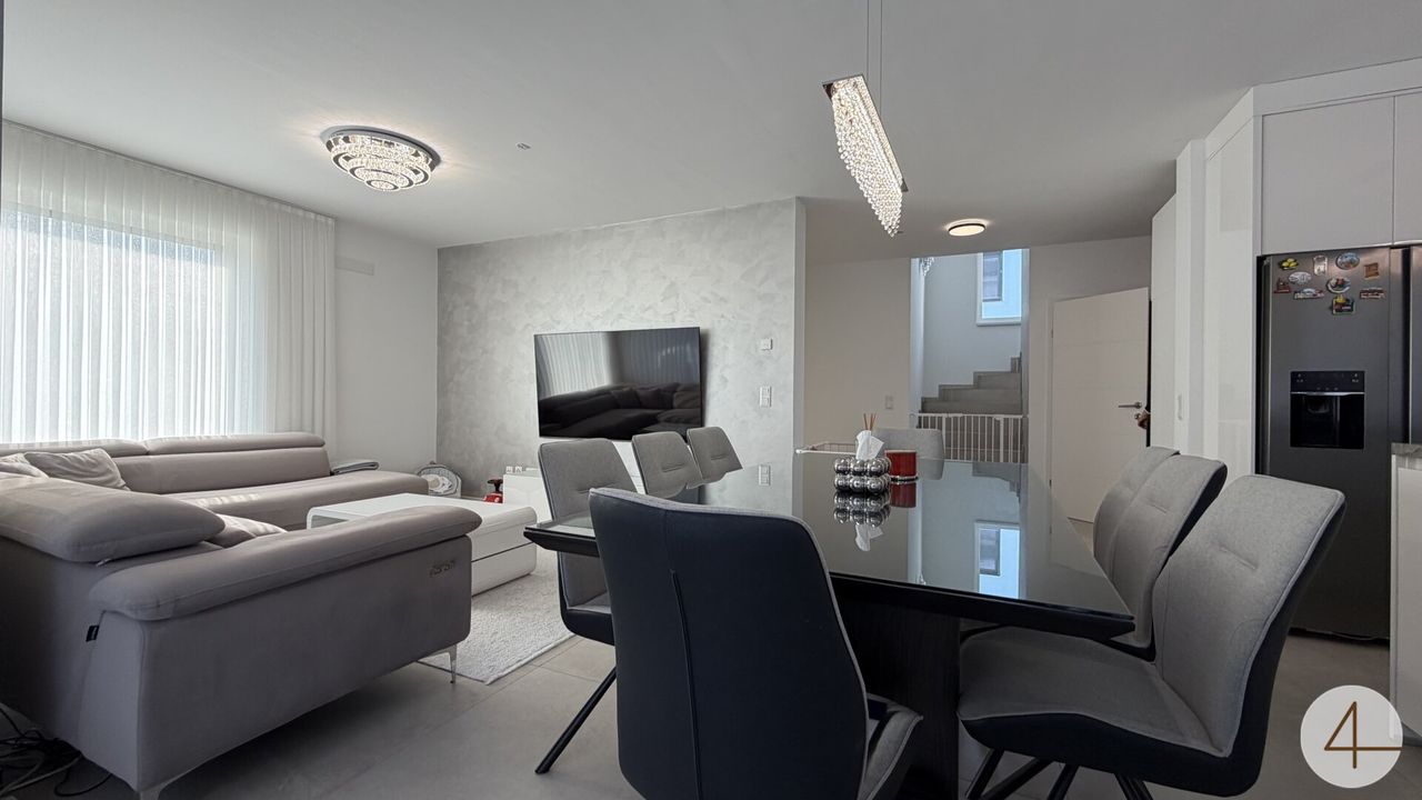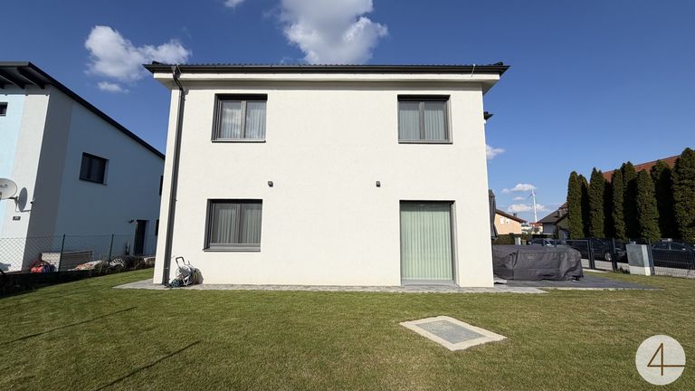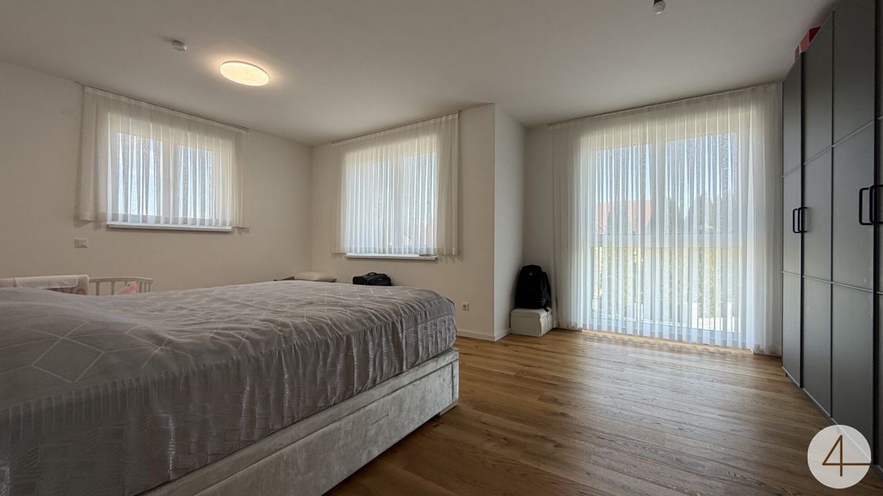 Auf einem ca. 436 m² großen Grundstück bietet das 2022 errichtete Haus großzügige Raumverhältnisse mit insgesamt fünf Zimmern, drei Bädern, zwei WCs sowie einem praktischen Technikraum.