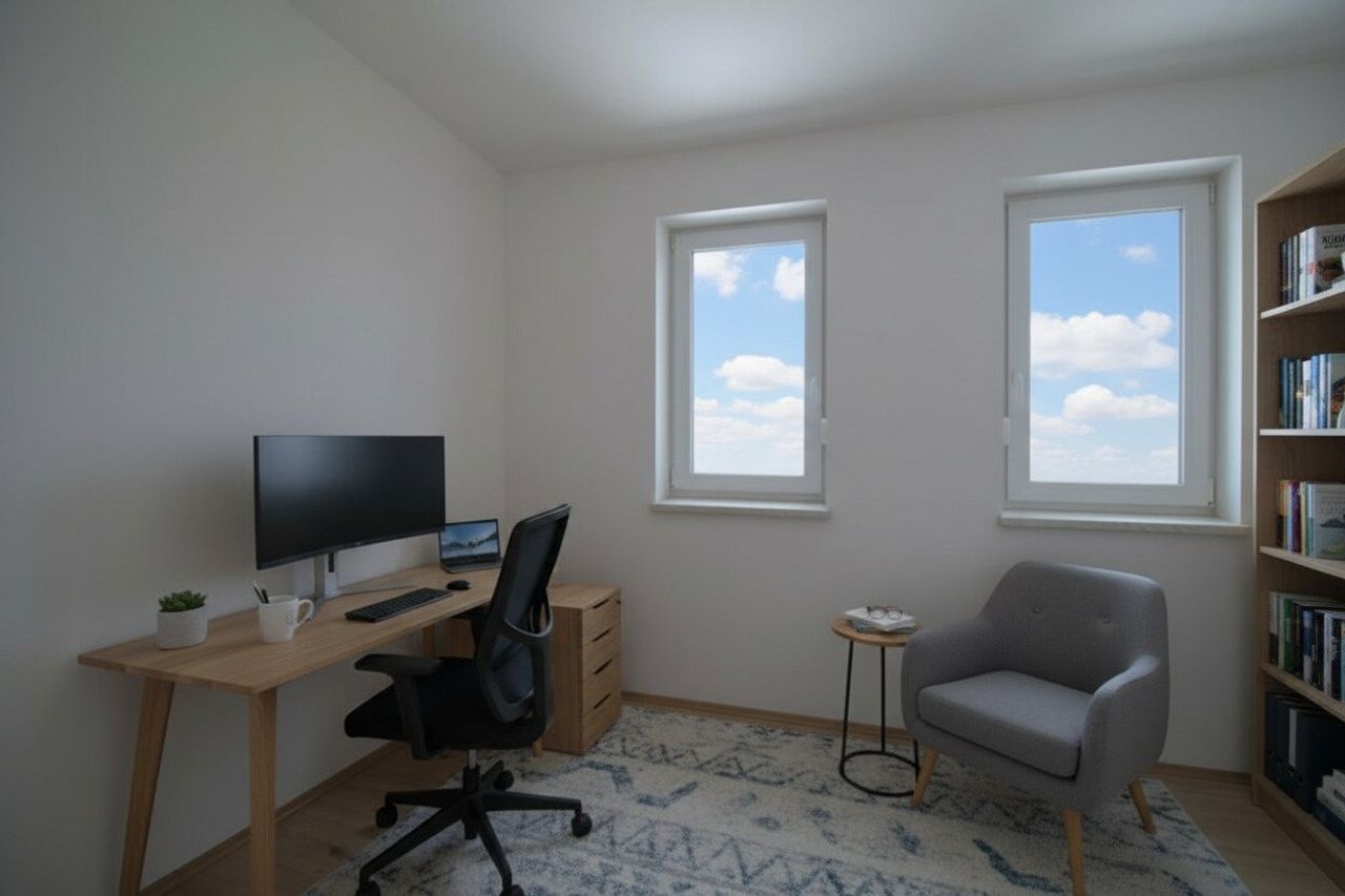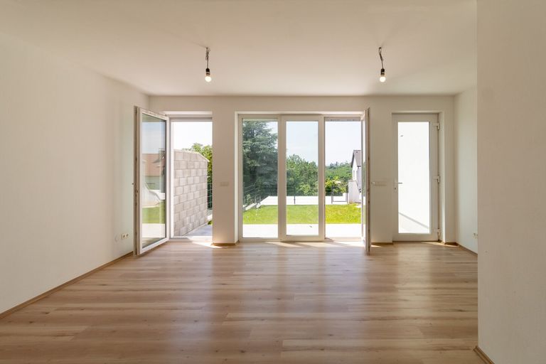 Die Fenster (Niedrigenergieschallschutzfenster, 3-fach verglast), die Terrassentüre und die Eingangstüre sind aus PVC und einbruchshemmend ausgeführt.