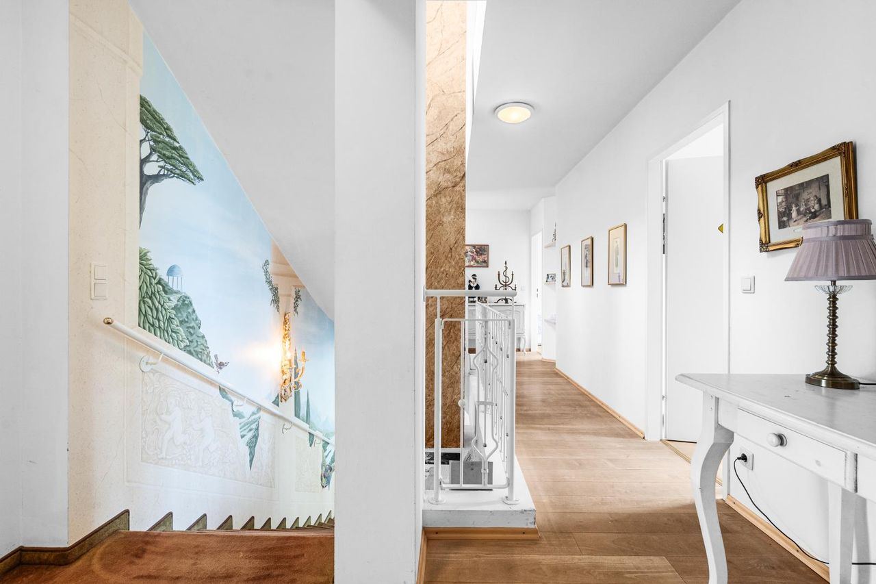 Das ausgebaute Dachgeschoss begeistert mit seiner offenen Galerie und einem weiteren Zimmer, das sich perfekt als Atelier, Gästezimmer oder Rückzugsort eignet.