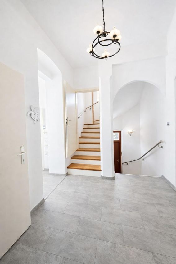 Das Haus wurde in massiver, gekoppelter Bauweise errichtet und verfügt über eine Wohnfläche von ca. 113 m², verteilt auf mehrere Ebenen. Die Architektur bewahrt den unverwechselbaren Charakter der Jahrhundertwende – kombiniert mit Ausbaureserven und Entwicklungsmöglichkeiten.
