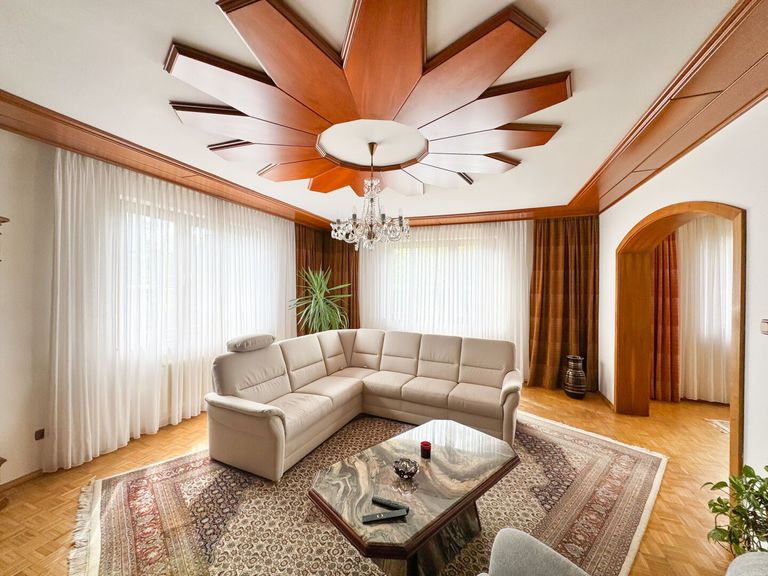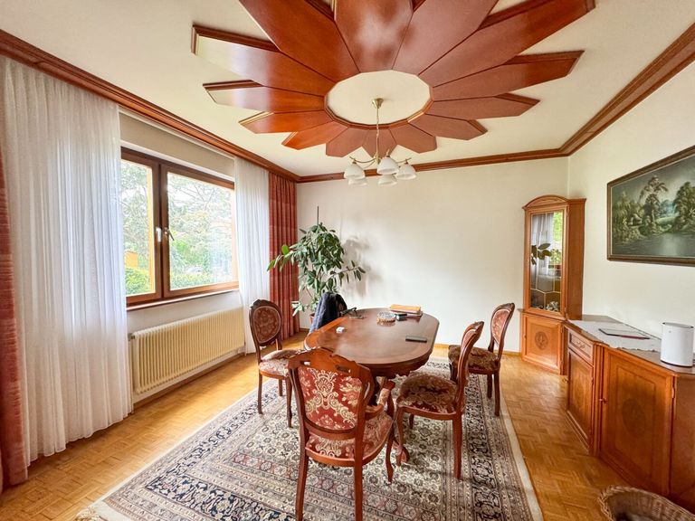 Kaufpreis: € 619.000 Grundstücksfläche: 612 m² Nutzfläche: ca. 340 m² Baujahr: 1970er Heizung: Ölzentralheizung Keller: Vollunterkellert (ca. 118,5 m²) Zustand: Gute Bausubstanz, modernisierungsbedürftig, hohes Gestaltungspotential Provision: 3 % zzgl. 20 % USt