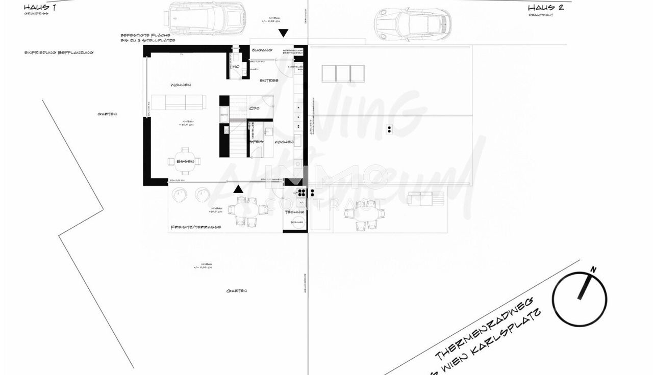 Liegenschaft: Haus 1 - 374 m2 | Haus 2 - 406 m2