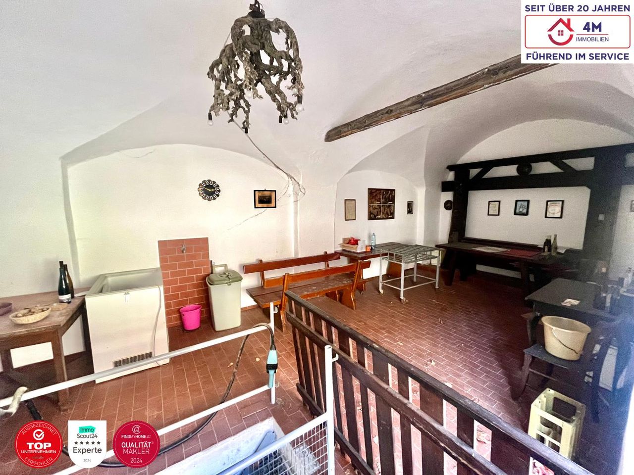 Ein besonderes Highlight ist der ca. 125 m² große Weinkeller, der über einen Aufzug bis zum gemütlichen Stüberl verfügt. Dieser Bereich eignet sich ideal für Weinverkostungen oder gesellige Abende im typischen Ambiente eines klassischen Winzerhauses.