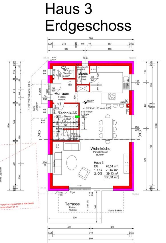 Haus 3: Gesamtwohnfläche: 186,31 m²