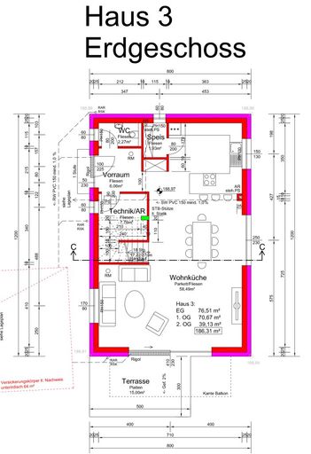 EG: Vorraum, WC, Technik/Abstellraum, Wohnküche mit Speis, Terrasse