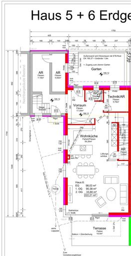 EG: Vorraum, WC, Technik/Abstellraum, Wohnküche mit Speis, Terrasse