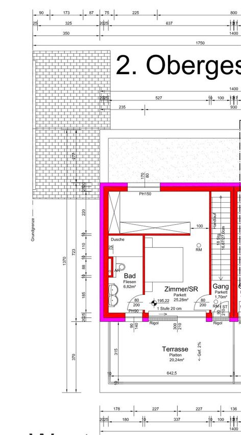 2.OG: 33,8 m²; Terrasse 20,24 m²