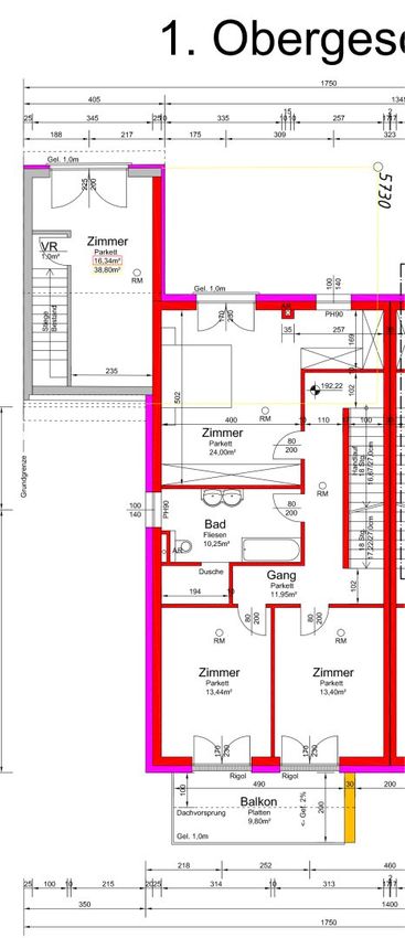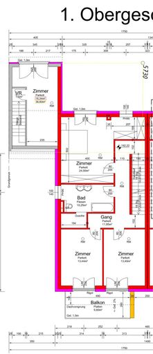 1.OG: 90,38 m² Wohnfläche; Balkon: 9,8 m²