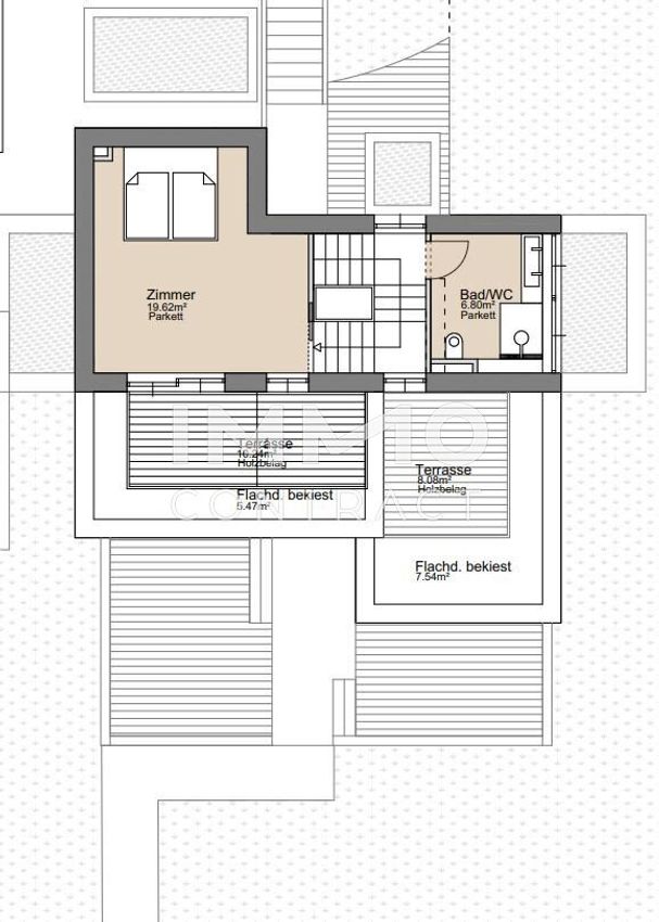 Dieses Haus befindet sich in der oberen Hälfte des Grundstücks und zeichnet sich durch die besondere Ruhelage am Grundstücksrand und die sich daraus ergebende Süd-Ost-Ausrichtung aus und punktet ebenso mit der Nähe zu den Pkw-Abstellplätzen.