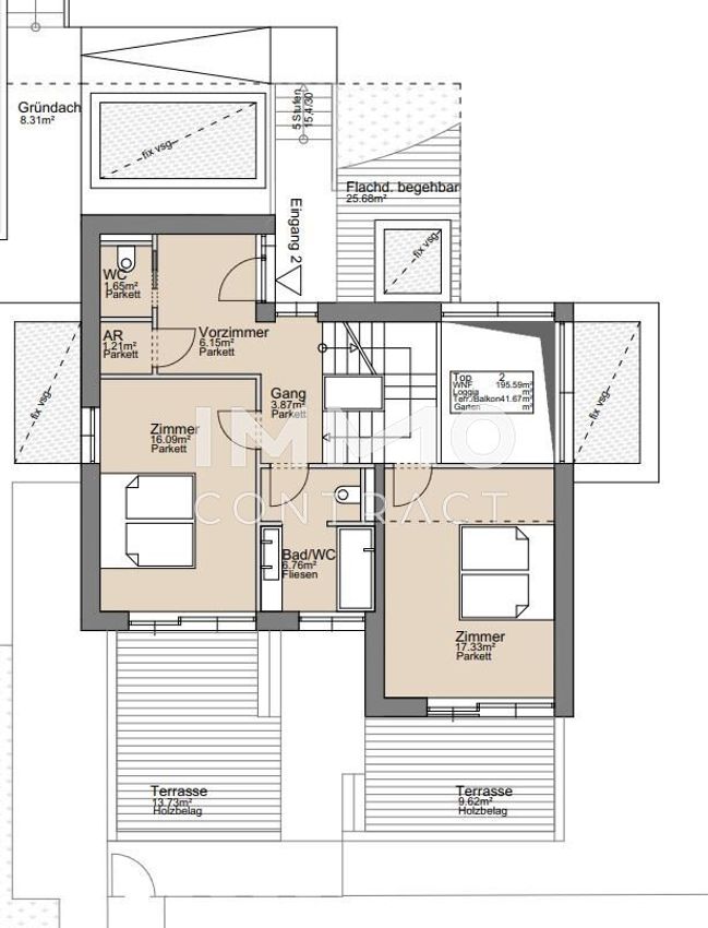 Der private Schlafbereich auf eigener Ebene bietet Ruhe und Geborgenheit. Im obersten Geschoss erwartet Sie ein exklusiver Masterbedroom mit en-suite Bad, 2 Terrassen und beeindruckender Weitsicht.