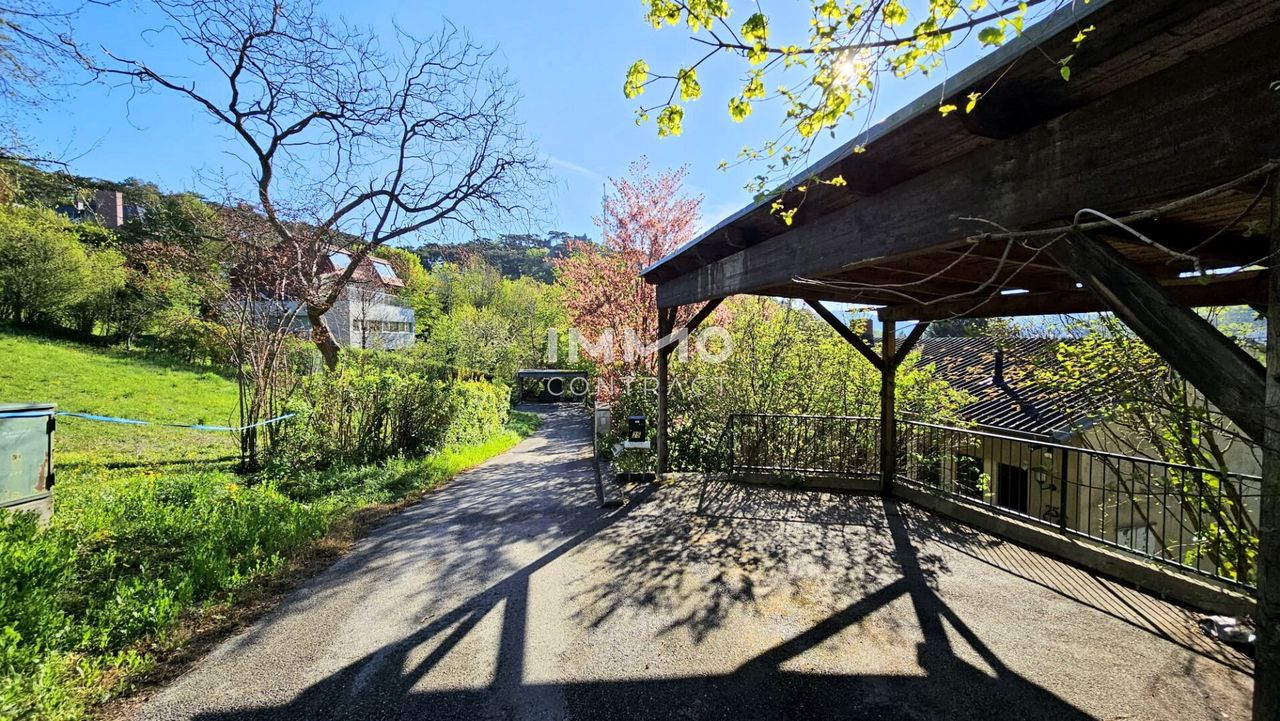 Die nach Süden ausgerichteten Terrassen bieten herrlichem Blick ins Tal und über den Wienerwald. Die großzügigen Fensterflächen auf der Südseite werden durch ein modernes Vordach sowie stilvolle Klappläden aus Holz vor direkter Sonneneinstrahlung geschützt.