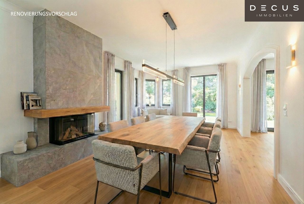Das Haus steht auf einem sanft abfallenden Grundstück und vermittelt bereits von außen den Charakter einer außergewöhnlichen Residenz. Es präsentiert sich in einem gepflegten und hochwertigen Gesamtbild, das über die Jahre mit viel Sorgfalt bewahrt wurde.
