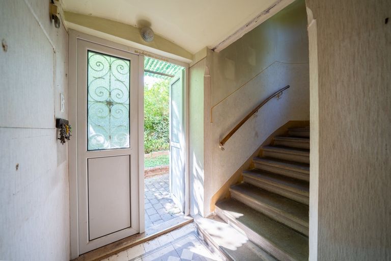 Ein gemeinsames Stiegenhaus führt in den ersten Stock: Hier stehen ein großer Salon, zwei Zimmer, eine Küche und ebenso eine Toilette mit Fenster zur Verfügung.