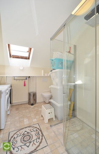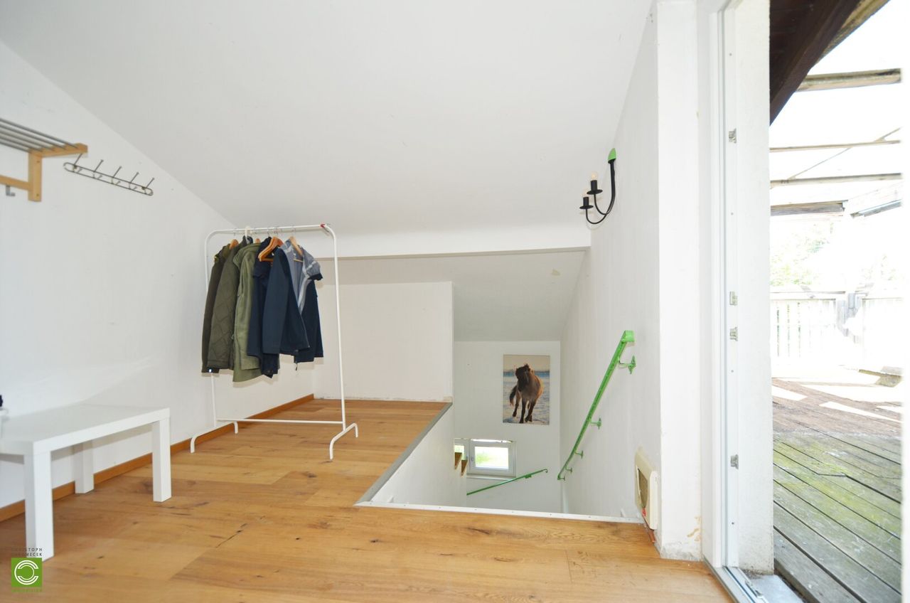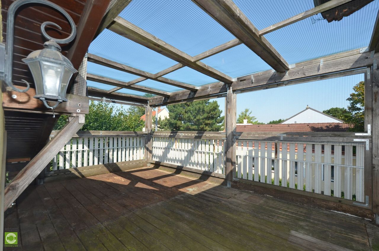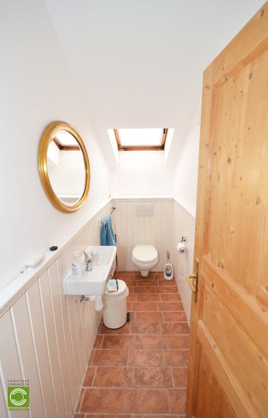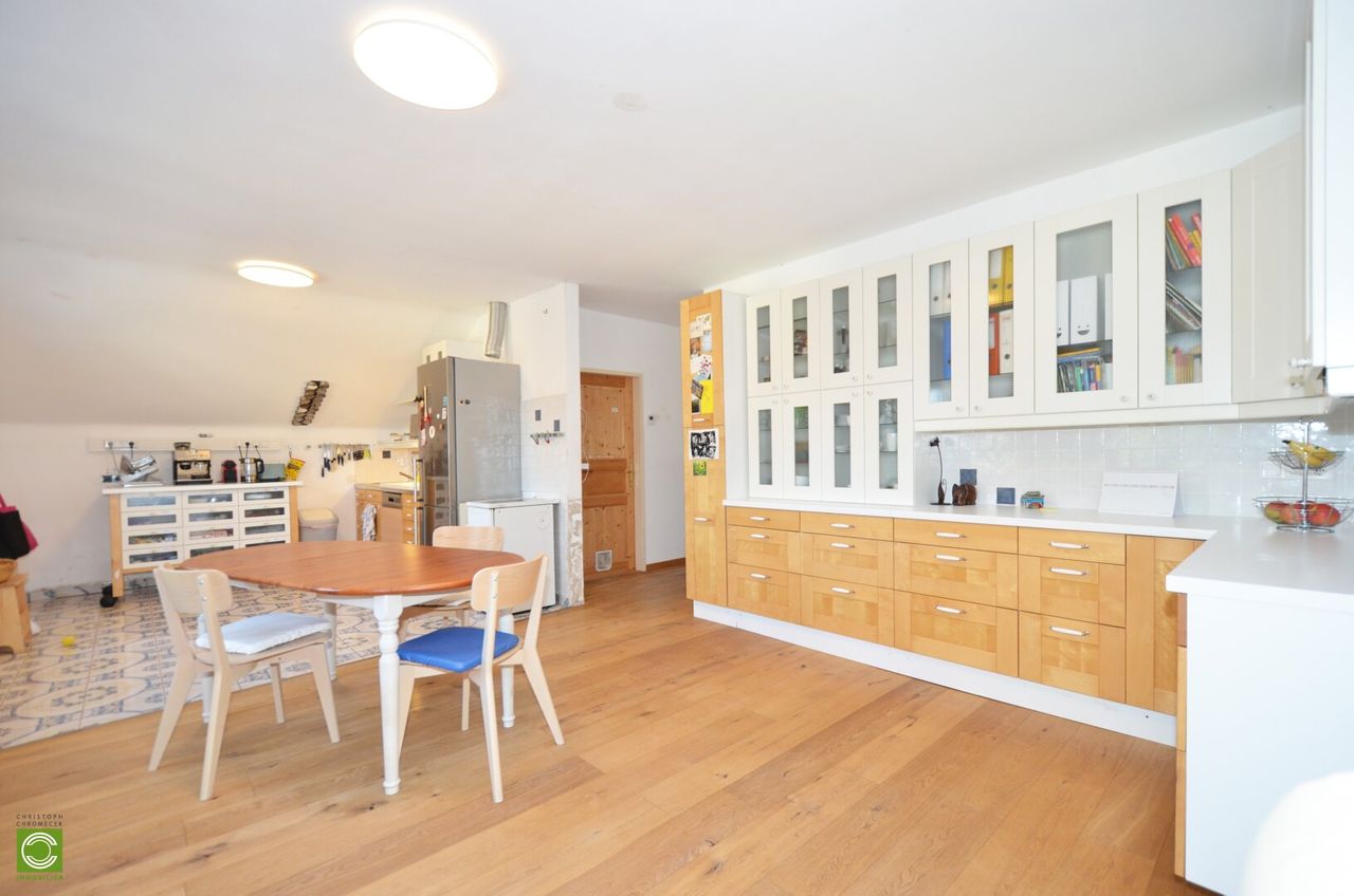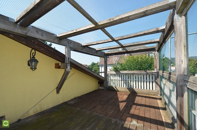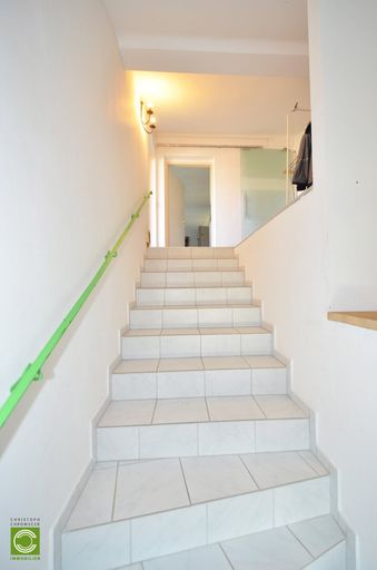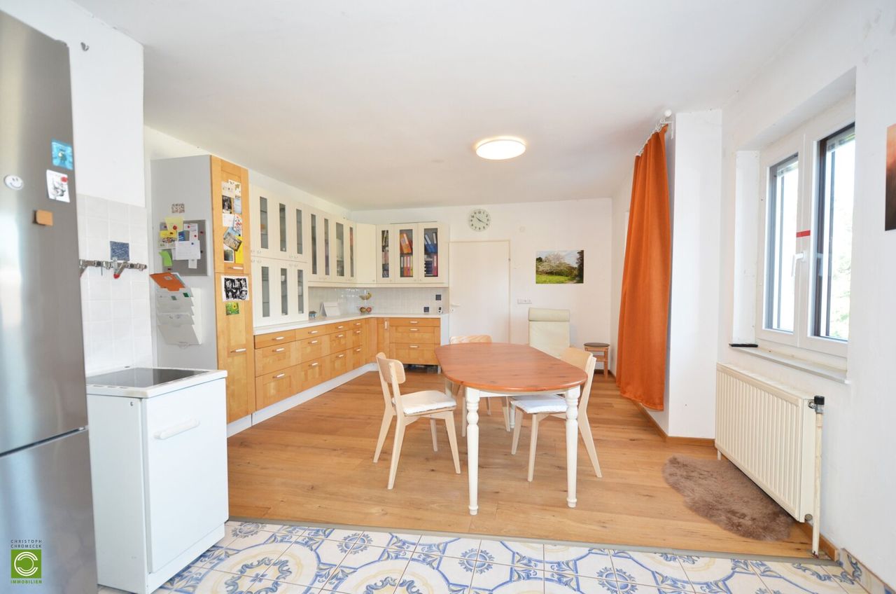 Im Obergeschoss, dass über ein eigenes Treppenhaus erreichbar ist, befindet sich eine Wohnung mit einer Fläche von rund 103 m², bestehend aus einer großen Wohnküche, drei weiteren Räumen, einem Duschbad mit WM-Anschluss, einer Toilette und einem Abstellraum sowie einer rund 22 m² großen, nordwestseitig orientierten Terrasse.