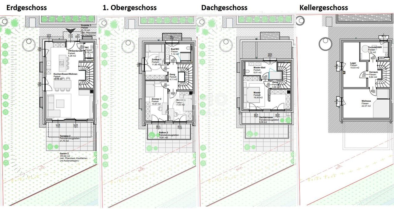 Zeitgemäßes Design mit klaren Linien, großen Fensterfronten und hochwertigen Materialien, offene Wohn- und Essbereiche mit edlen Bodenbelägen und stilvollen Designelementen, große private Gärten, Terrassen und teilweise Dachterrassen für entspannte Stunden im Freien, sowie modernste Dämmung, nachhaltige Heiztechnik und innovative Energiekonzepte - all das macht diese Häuser zu einer wertbeständigen Investition in Ihre Zukunft.