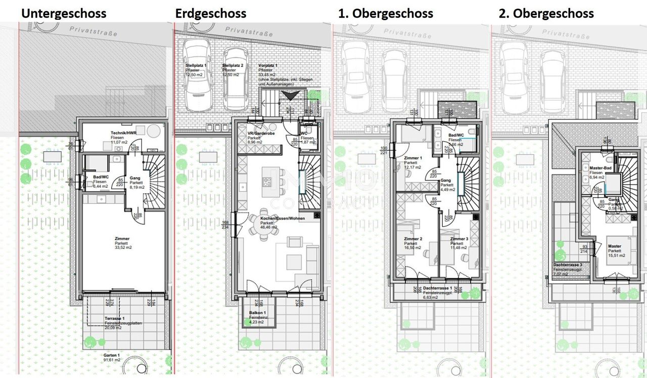Zeitgemäßes Design mit klaren Linien, großen Fensterfronten und hochwertigen Materialien, offene Wohn- und Essbereiche mit edlen Bodenbelägen und stilvollen Designelementen, große private Gärten, Terrassen und teilweise Dachterrassen für entspannte Stunden im Freien, sowie modernste Dämmung, nachhaltige Heiztechnik und innovative Energiekonzepte - all das macht diese Häuser zu einer wertbeständigen Investition in Ihre Zukunft.
