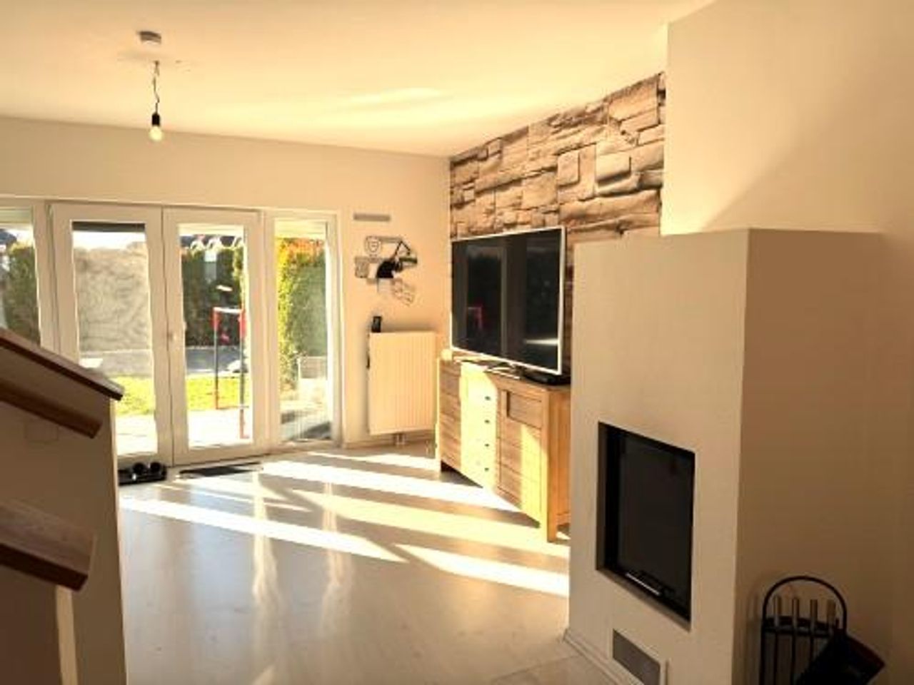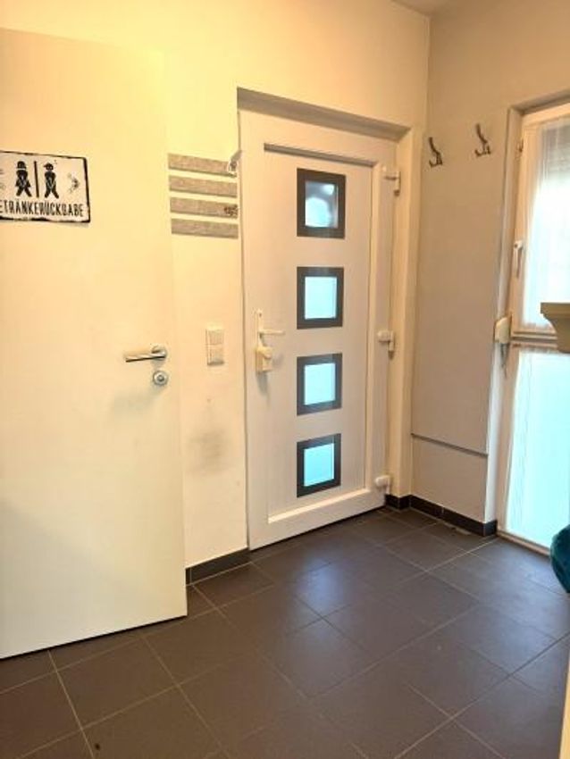 Vorraum ca. 4,4m², WC ca. 1,3m² mit Fenster und Handwaschbecken, Küche ca. 6m² mit moderner/neuwertiger Einbauküche, Wohn/Essbereich ca. 31,4m² mit Kamin und Ausgang auf die ca. 16m² große südseitiger Terrasse und den Garten, eine Garage ca. 21m² mit anschließendem Gerätehaus (auch vom Garten aus zu begehen).