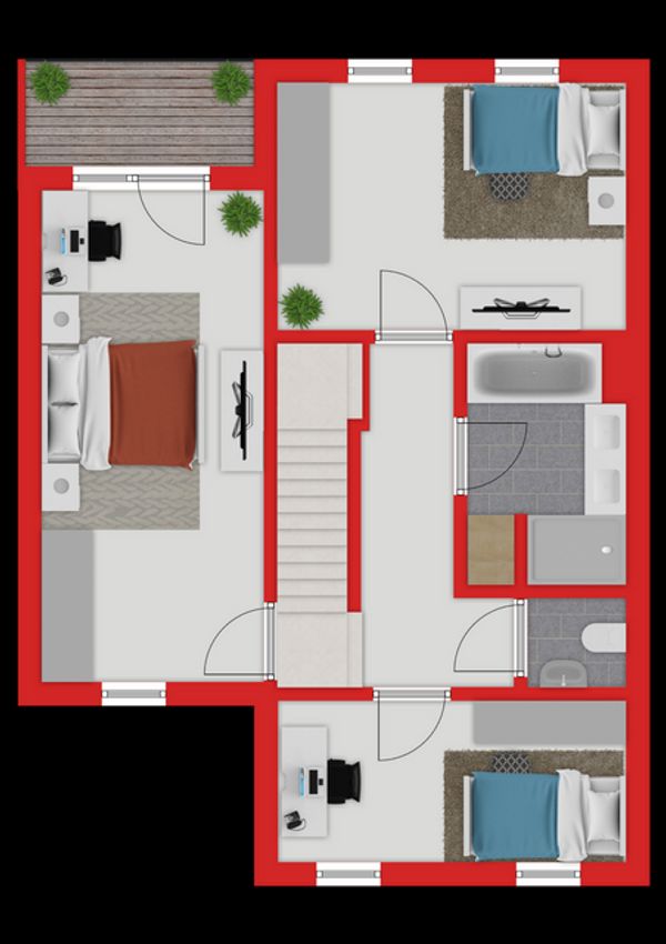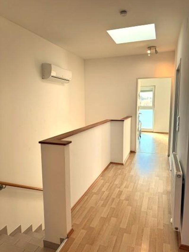 Vorraum ca. 6,5m² mit Lichtkuppel (elektrisch zu öffnen), WC ca. 1,7m², Badezimmer ca. 6,5m², mit Doppelwaschtisch, Badewanne, begehbarer Dusche, ebenfalls mit Lichtkuppel, Zimmer 1 ca. 20m², mit Ausgang auf den ca. 5m² großen südseitigen Balkon, Zimmer 2 ca. 13,7m², Zimmer 3 ca. 19,7m².