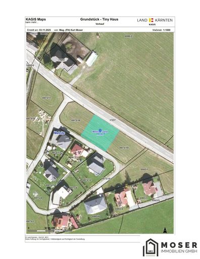 Das Tiny Haus befindet sich neben der Bundesstraße auf dem Grundstück 6973/15, welches ein grundbücherlich verbüchertes Gesamtausmaß von 957m² ausweißt.
