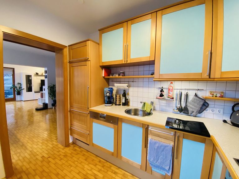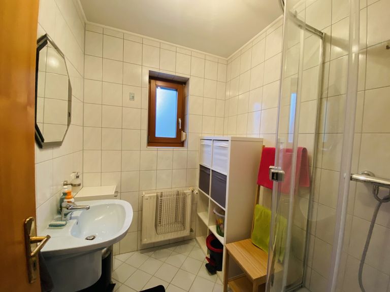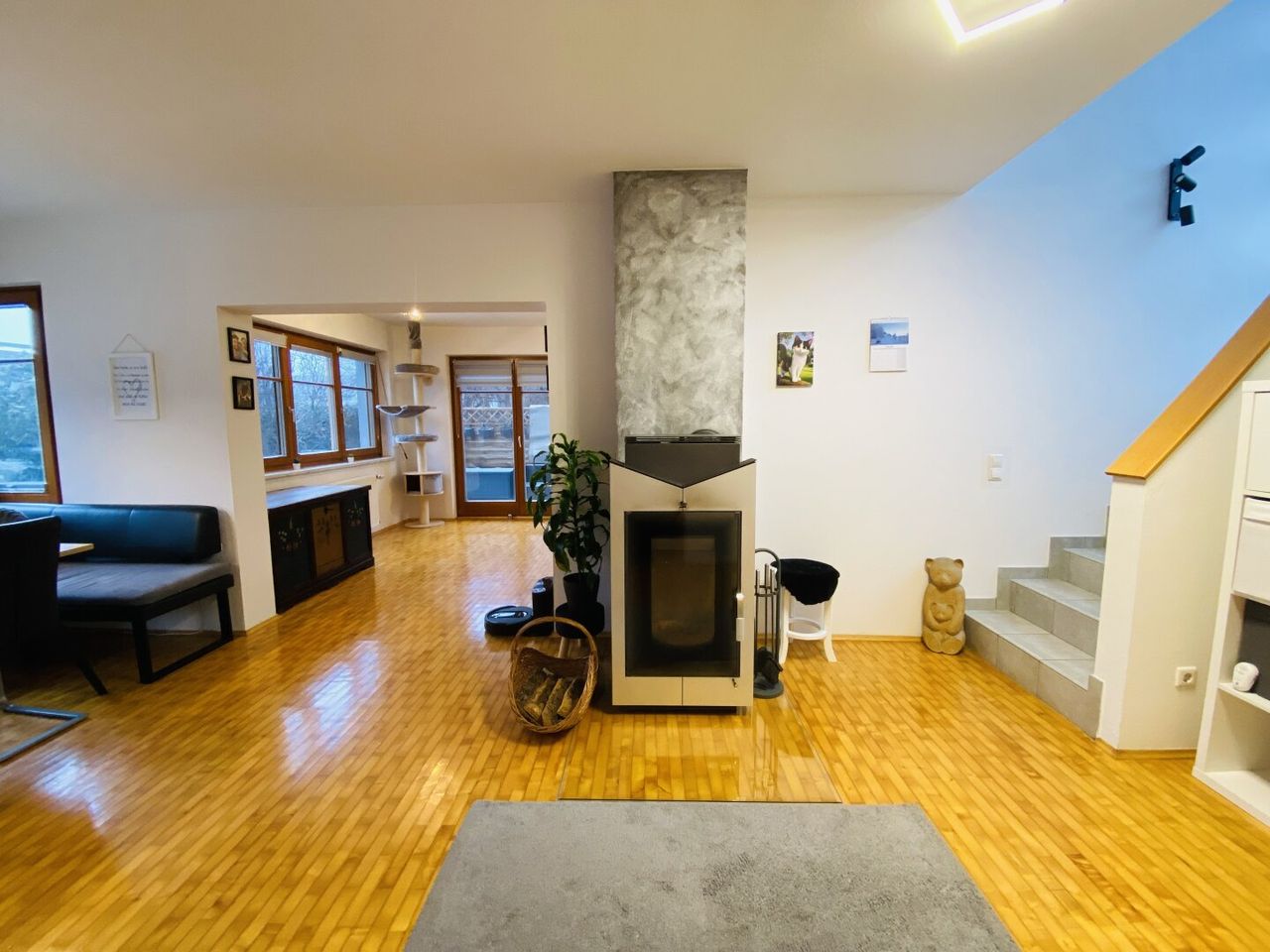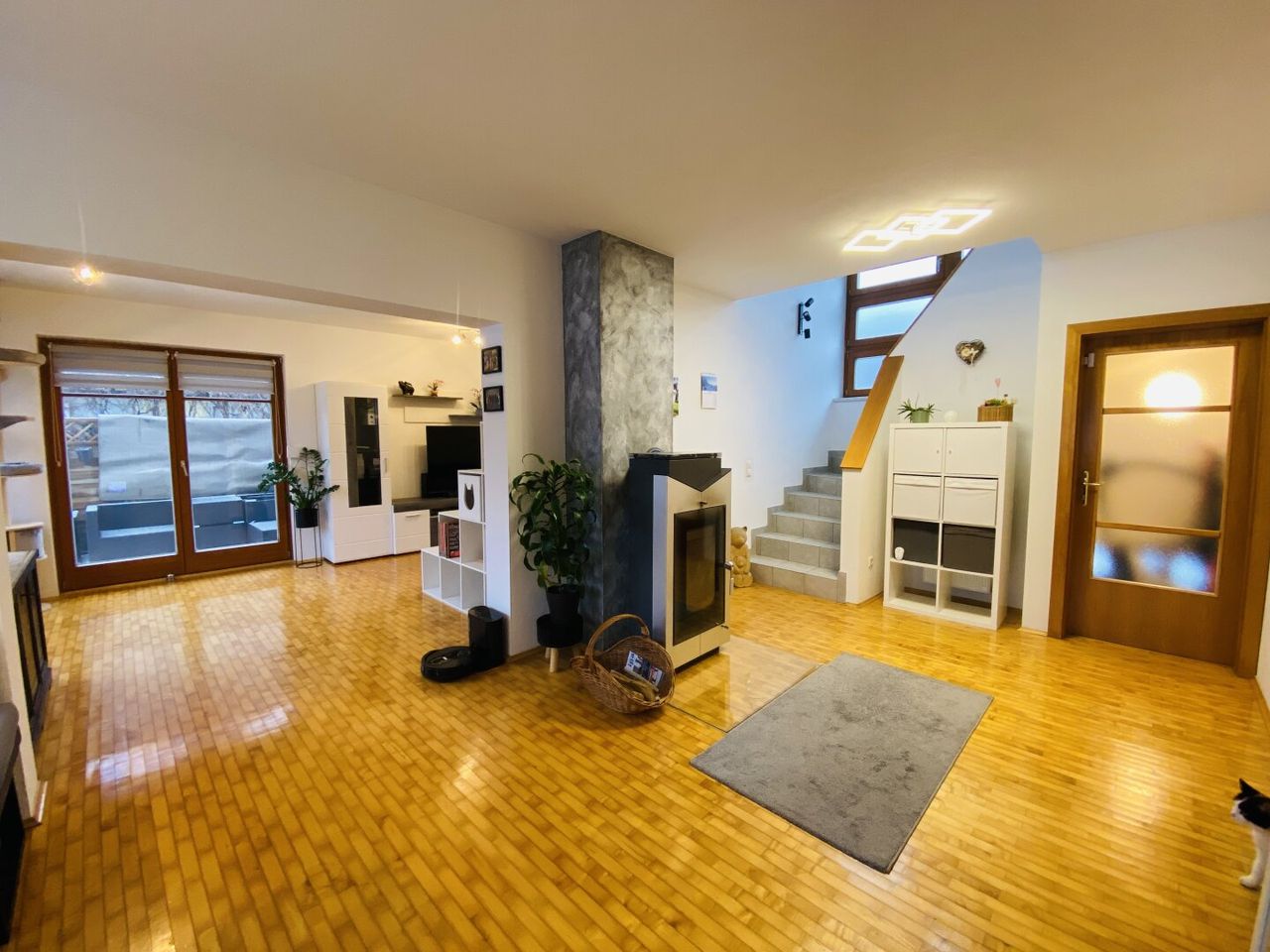 Über einen großzügigen Eingangsbereich gelangen Sie in das Erdgeschoss des Hauses. Hier befinden sich ein Gäste-WC sowie ein separates Gästebad. Herzstück dieser Ebene ist der offen gestaltete Wohn- und Essbereich mit gemütlichem Schwedenofen und direktem Zugang zur Terrasse und in den Garten. Die Küche ist mit einer modernen Einbauküche inklusive Elektrogeräten ausgestattet und fügt sich harmonisch in das Raumkonzept ein.