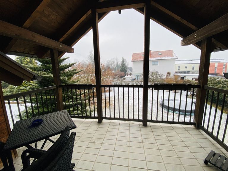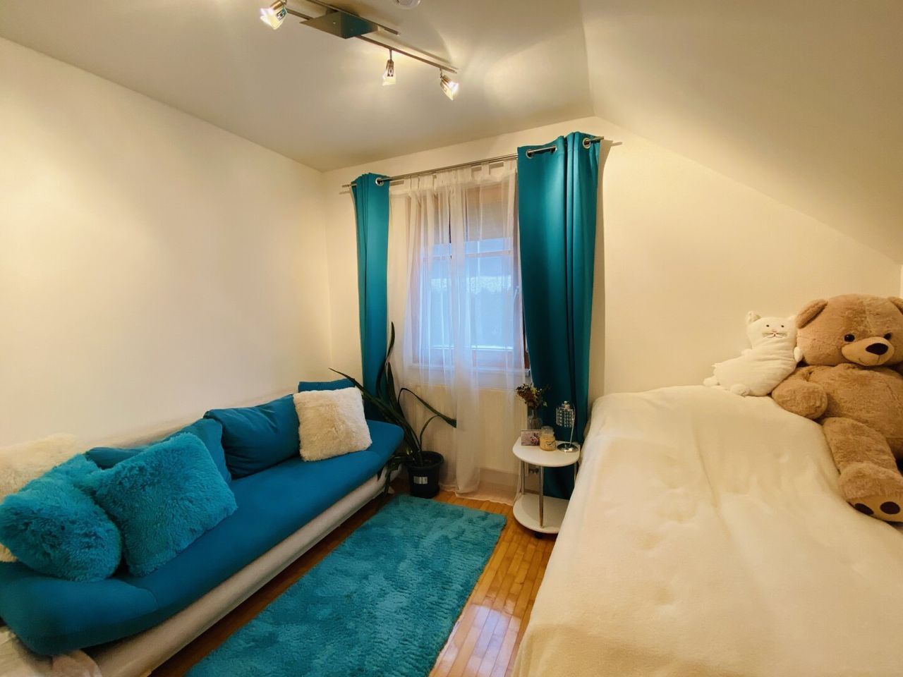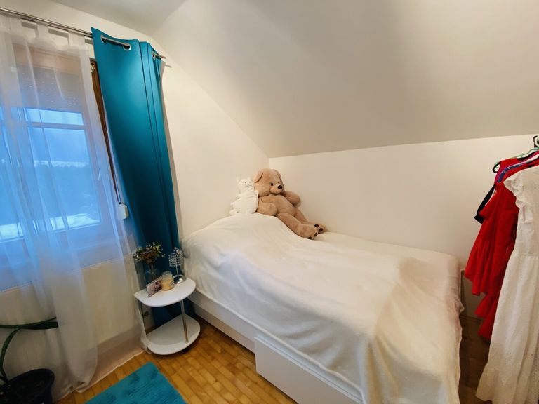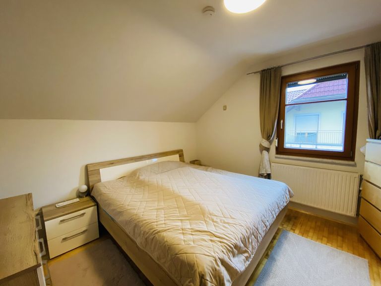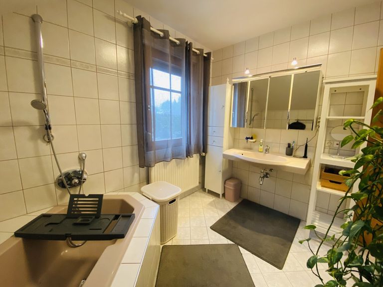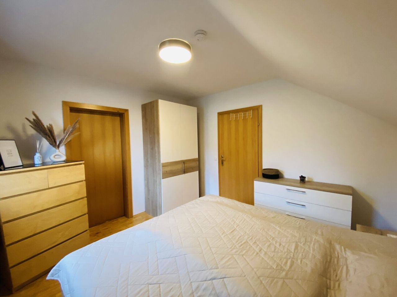 Das Obergeschoss empfängt Sie mit einer großzügigen Galerie und Zugang zu einem Balkon. Es stehen vier Zimmer zur Verfügung: ein geräumiges Schlafzimmer mit angrenzendem begehbarem Kleiderzimmer, ein Kinderzimmer sowie ein Badezimmer mit Badewanne, WC, Waschbecken und Fenster.