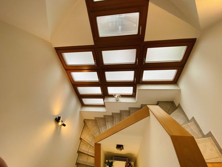 Erdgeschoss: Über einen großzügigen Eingangsbereich gelangen Sie in das Erdgeschoss des Hauses. Hier befinden sich ein Gäste-WC sowie ein separates Gästebad. Herzstück dieser Ebene ist der...