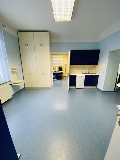 Erdgeschoss (ca. 120 m²): Jahrzehntelang als Arztpraxis genutzt – ideal für Ordination, Kanzlei oder Büronutzung. Eigener Zugang, Empfang, Wartezimmer, mehrere Behandlungsräume