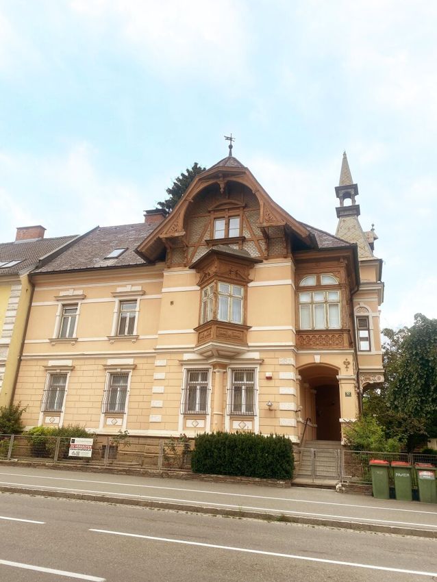 Diese außergewöhnliche Stadtvilla aus dem Jahr 1901 zählt zu den architektonischen Highlights im Zentrum von Knittelfeld. Mit ihrer eindrucksvollen Fassade, dem stilprägenden Dachgiebel, der gegliederten Fensterstruktur und den liebevoll erhaltenen Details verkörpert sie den eleganten Stil der Jahrhundertwende – eine Epoche, in der Ästhetik, Raumgefühl und Handwerkskunst auf höchstem Niveau zusammentrafen.