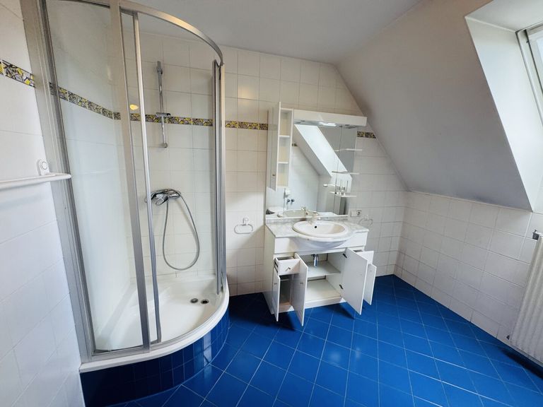Dachgeschoss (ca. 100 m²): Ausgebauter, heller Wohnbereich mit mehreren Zimmern, Badezimmer und Saunabereich mit Dusche. Dieses Dachgeschoß hat vielseitige Nutzungsmöglichkeiten – etwa als Jugendbereich, Studio, Büro oder eigene Wohneinheit.