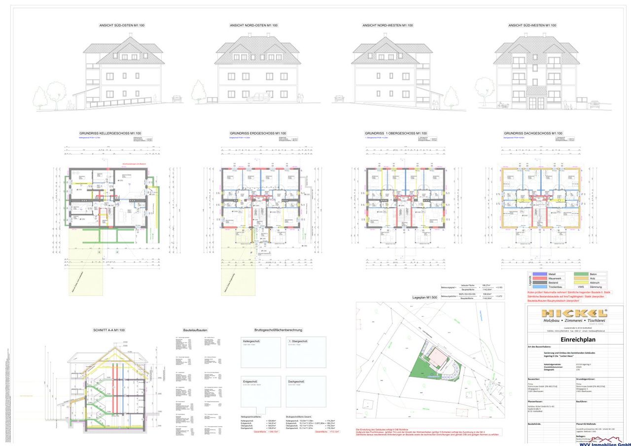 rund 549,15 m² (Erdgeschoss: 144,81 m², Obergeschoss: 136,67 m², Dachgeschoss: 138,87 m² und Kellergeschoss: 128,80 m²)