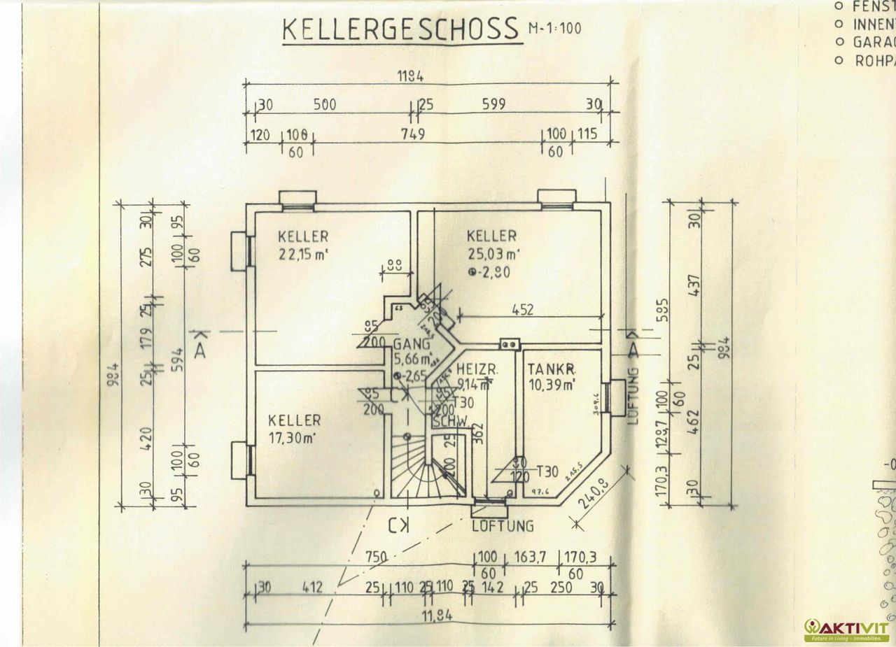 - Keller mit ca. 92 m² inkl. Heizraum, Tankraum und drei weiteren Räumen
