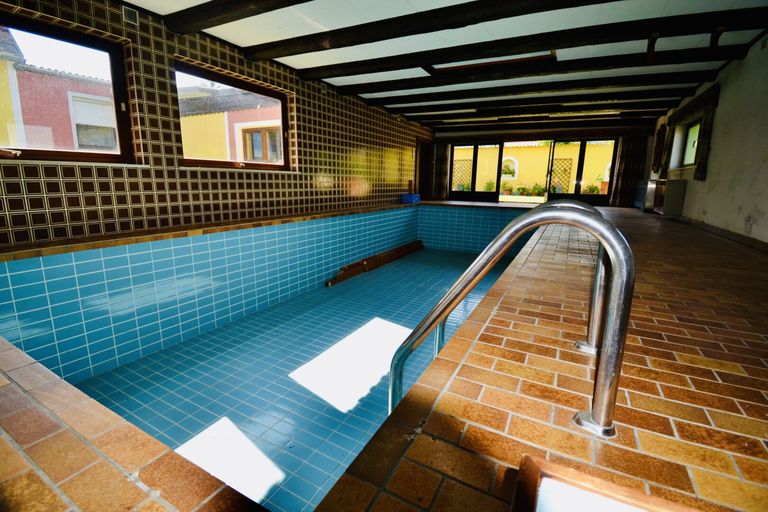 Hallenbadbereich (ca. 84 m²) mit 10 x 4 m Becken und direktem Zugang zum Garten