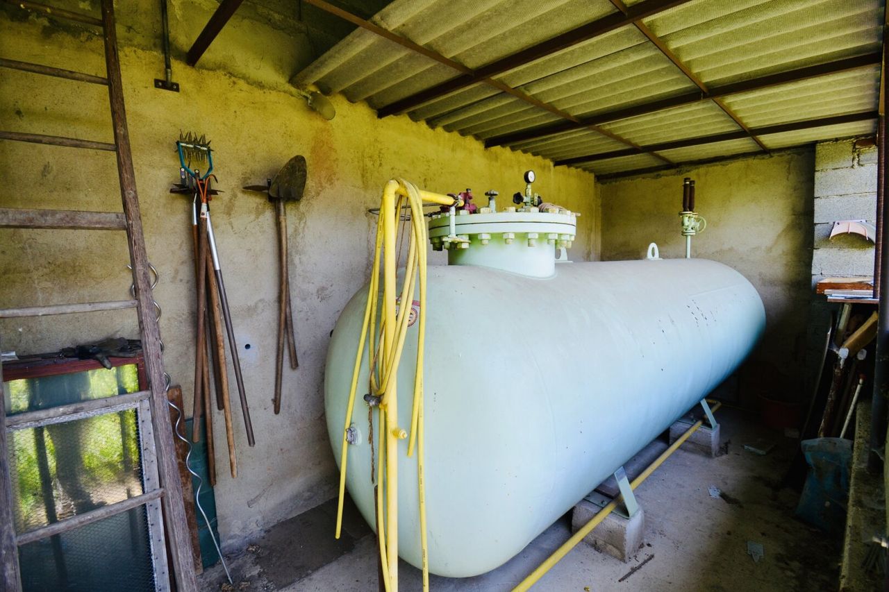 Doppelgarage mit elektrischem Tor, Strom und Wasseranschluss und zusätzlichen Abstellraum, Gemüsegarten, Propangastank