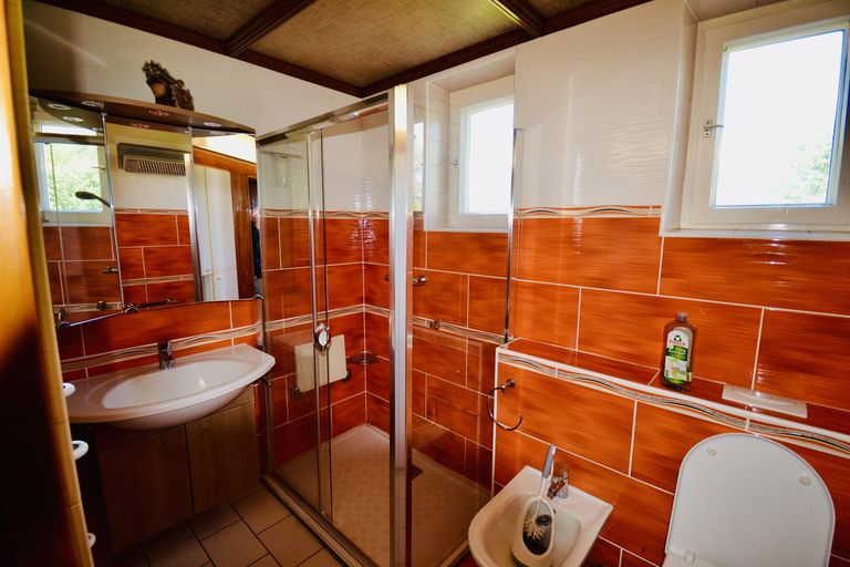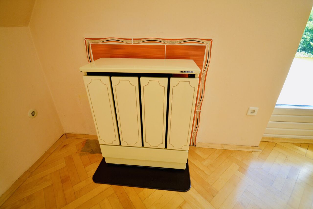 Die angeschlossene Wohneinheit im Erdgeschoss ist sowohl über den Verkaufsraum als auch über einen separaten Außeneingang zugänglich. Sie bietet ein einladendes Entrée mit Treppenhaus und Flur, ein Badezimmer mit Dusche, Fenster, Waschbecken und WC (modernisiert ca. 2015), eine separate Küche mit Einbauküche, ein geräumiges Wohnzimmer sowie ein ruhiges Schlafzimmer. Ein Büroraum und ein Kinderzimmer erweitern den funktionalen Bereich dieses Geschosses.