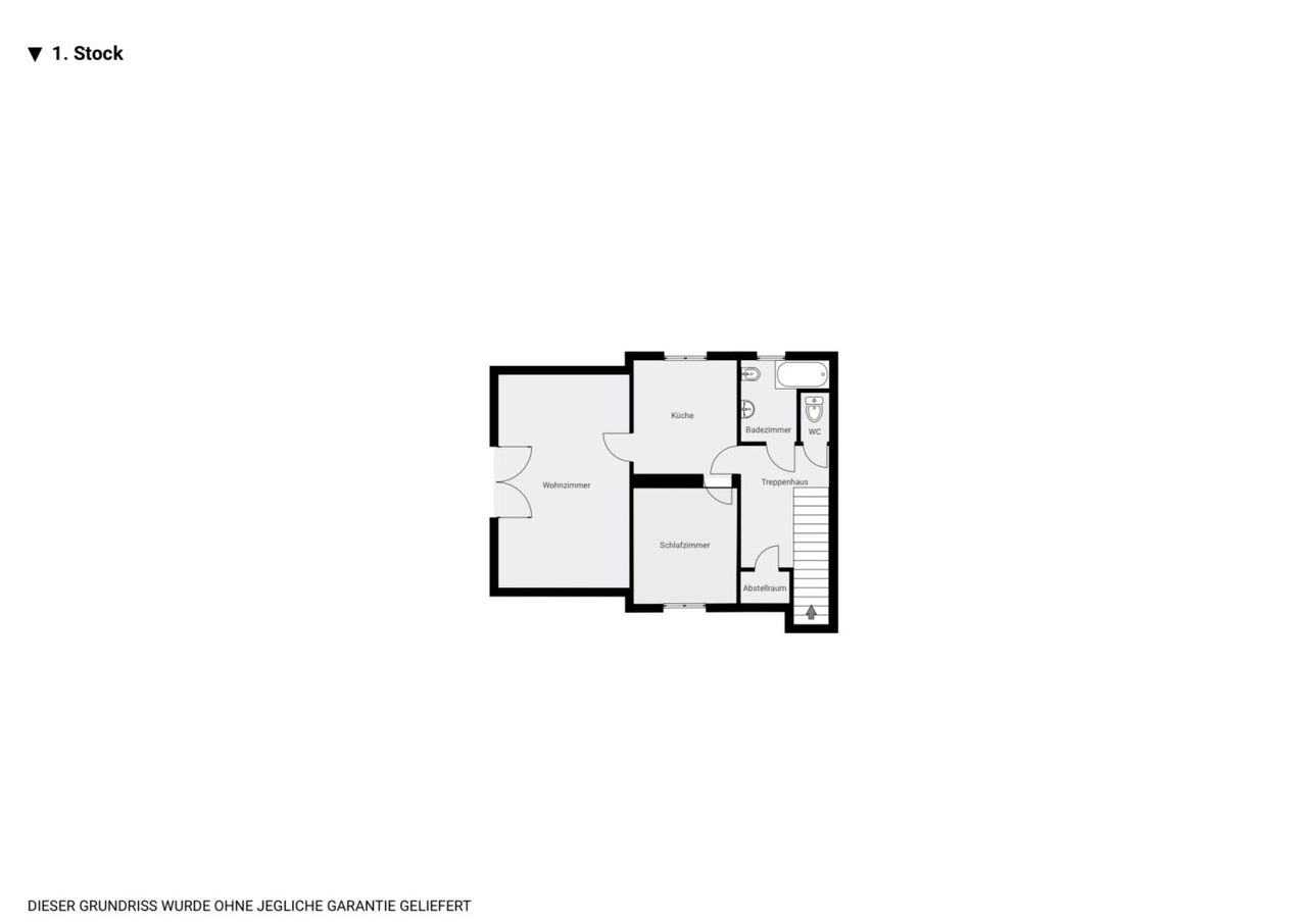 Küche mit Einbauküche, Badezimmer mit Wanne, separates WC, Wohnzimmer, Schlafzimmer, Abstellraum