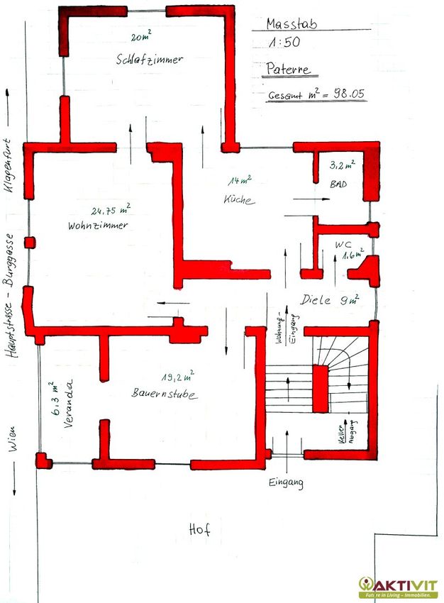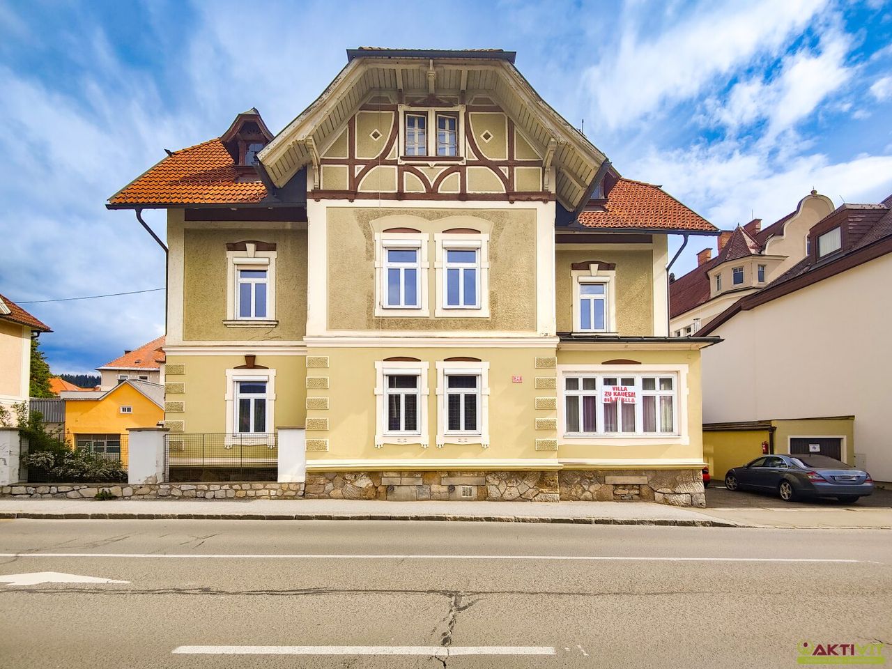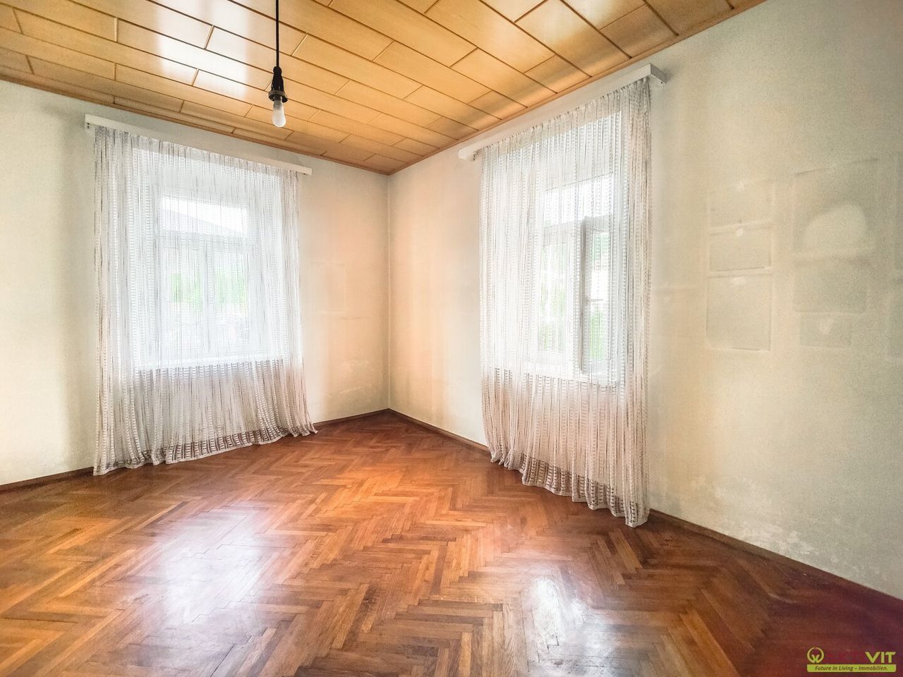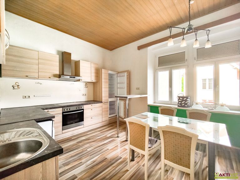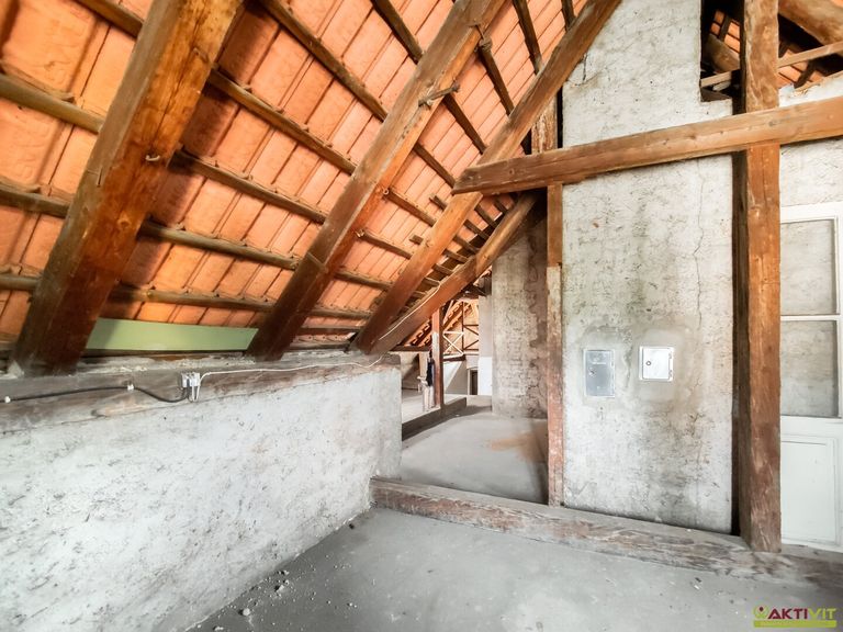 Das Haus wurde um 1903 in Massivbauweise errichtet und befindet sich in einem renovierungsbedürftigen Zustand, insbesondere im Bereich des Dachgeschosses besteht Sanierungsbedarf. Einzelne Bereiche – darunter eine der beiden Küchen und ein Badezimmer – sind jedoch in gutem Zustand und können sofort genutzt werden.