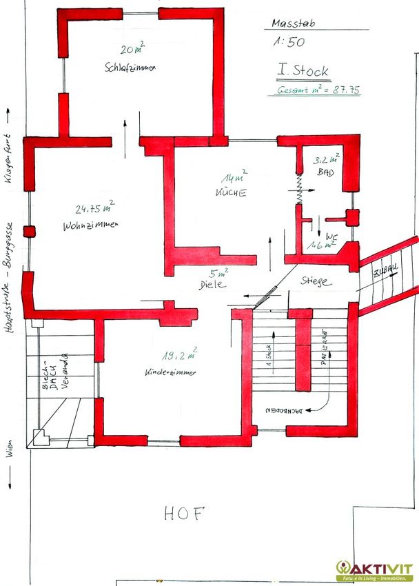 - Grundstücksgröße ca. 453 m² – zur Gänze als Bauland-Kerngebiet gewidmet.