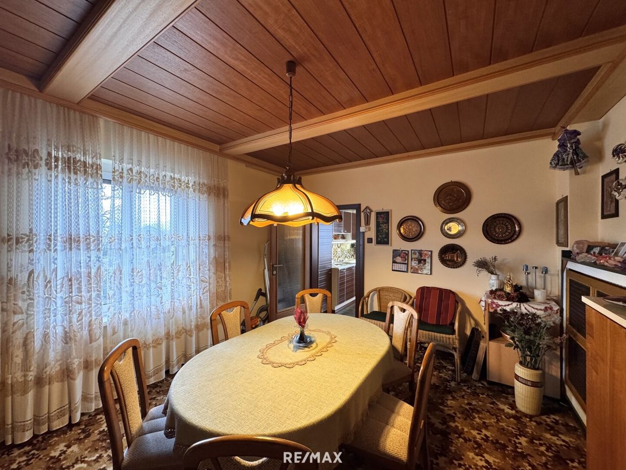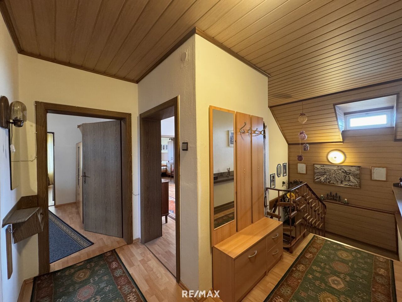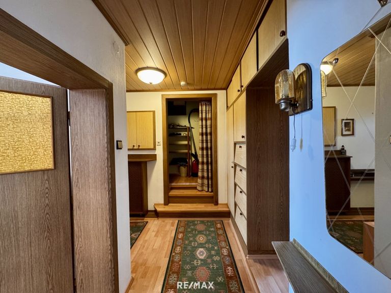Im Erdgeschoss befindet sich ein großzügiger Wohnbereich mit Küche, drei weiteren Zimmern sowie ein Badezimmer mit Dusche. Das Obergeschoß umfasst vier Zimmer wobei zwei davon als Durchgangszimmer angelegt sind, sowie ein Badezimmer mit Badewanne. Die Wohnräume bieten ausreichend Platz, um mit einer Renovierung ein gemütliches Zuhause nach eigenen Vorstellungen zu schaffen.