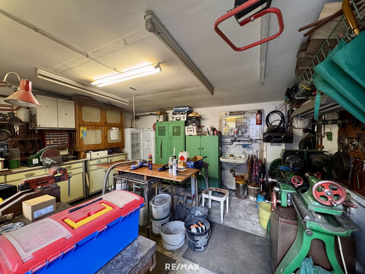 Weiters befindet sich am Grundstück eine Garage, ein KFZ Abstellplatz, Abstellräume sowie eine eingerichtete Werkstatt. Dadurch eignet sich die Liegenschaft besonders gut für Personen, die gerne selbst Hand anlegen oder Platz für handwerkliche Tätigkeiten benötigen.