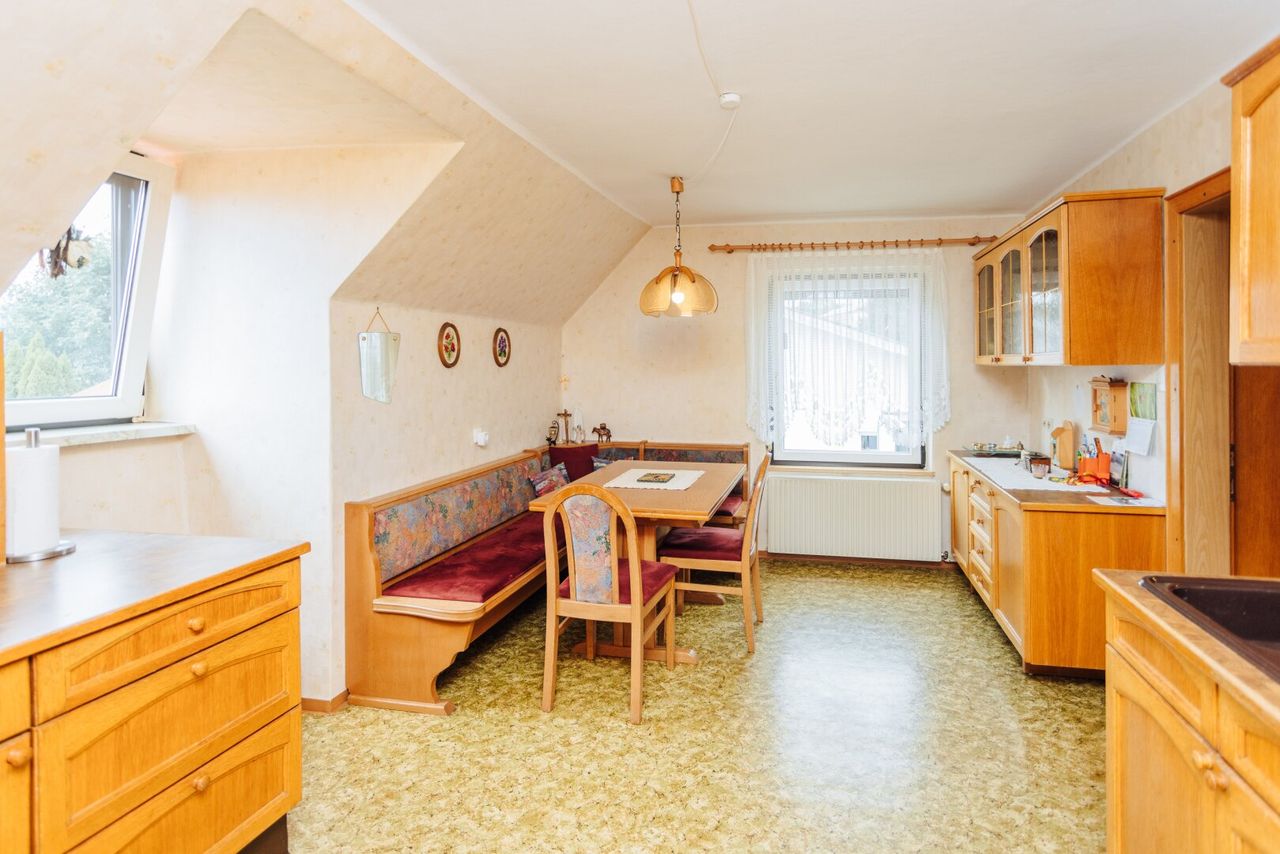 Das Wohnhaus wurde über die Jahre regelmäßig saniert und gut instandgehalten. So erfolgte beispielsweise ein praktischer Zubau des Hauses, wodurch es um einen Wohnraum und ein Zimmer erweitert wurde, ein Zubau eines weiteren Keller-/Hobbyraums sowie ein großzügiges Carport mit Platz für vier Fahrzeuge. Zudem wurden die Außenanlage erneuert, die Stromleitungen und Heizungsrohre, das Heizsystem - auch Fernwärme befindet sich bereits im Haus - die Küche im Erdgeschoss, die Böden sowie das Dach und der Vollwärmeschutz ausgetauscht bzw. angebracht – Maßnahmen, die Ihnen für einen längeren Zeitraum kostspielige Investitionen ersparen und für Energieeffizienz und Wohnkomfort sorgen.