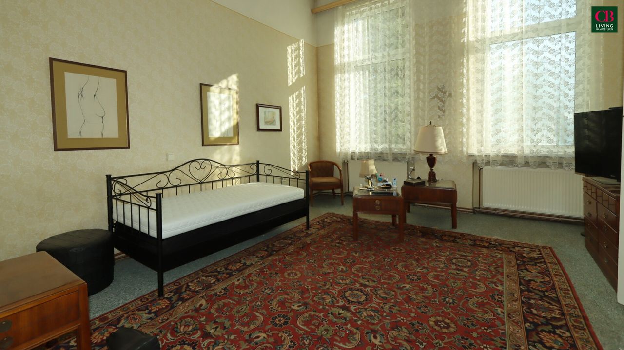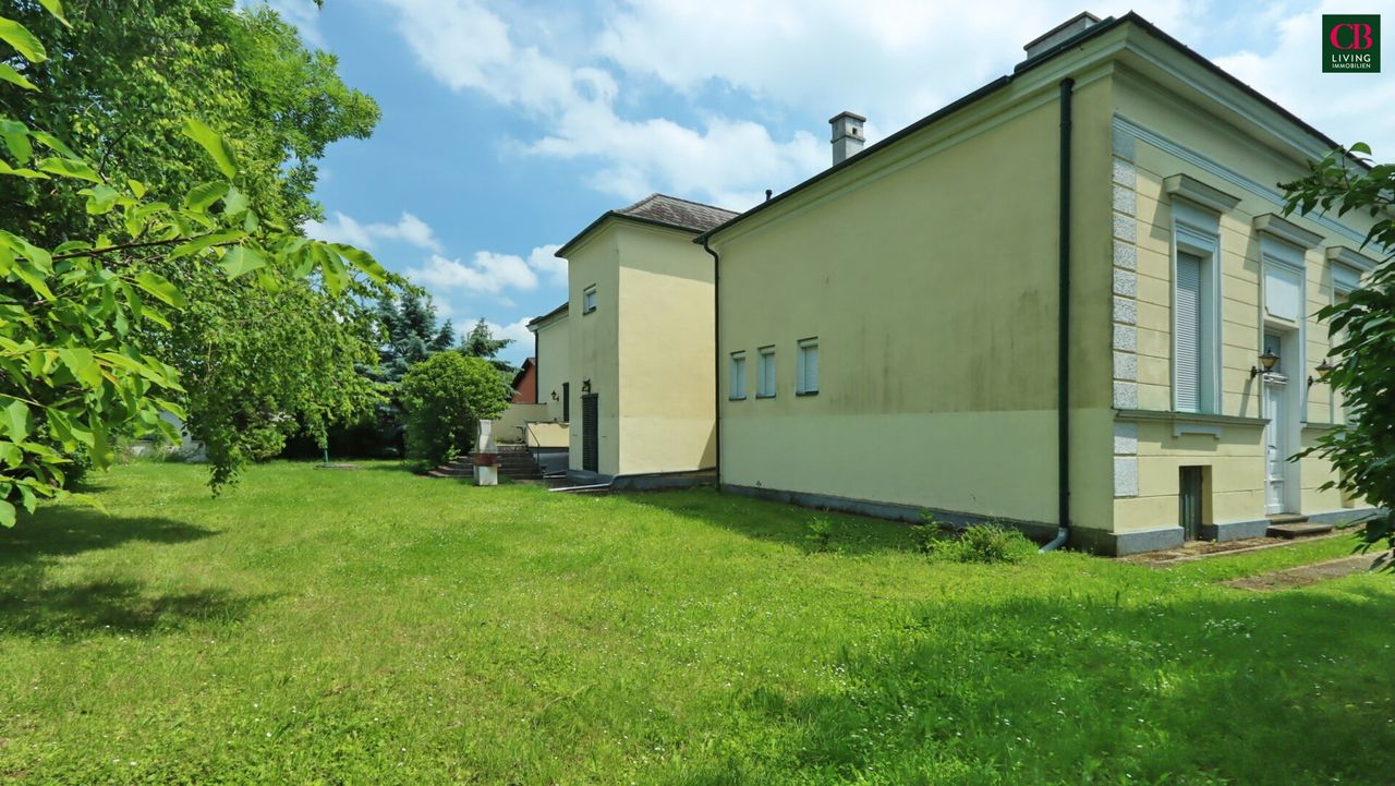 Dieses außergewöhnliche Herrenhaus besticht durch Eleganz, Großzügigkeit, den Charme der Jahrhundertwende und viel Freiraum. 1897 als Volksschule errichtet, wurde es vor ca. 40 Jahren zu einer eleganten Villa umgestaltet, die durch die Schmuckfassade, das großzügige Entrèe, hohe Räume, die originalen Kassettentüren und zahlreiche charmante Details zu einem Einod wurde. Es gibt einen Haupteingang und zwei Nebeneingänge. Hier werden Träume wahr. Der 1567m² große, parkähnliche Garten mit wunderschönem Altbaumbestand bietet zahlreiche Möglichkeiten der Gestaltung! Bei der Generalsanierung wurde nur der dauerhaft bewohnte Teil der Villa mit einer Gaszentralheizung ausgestattet, die anderen Räume können derzeit nur mit einzelnen Öfen beheizt werden. Die...