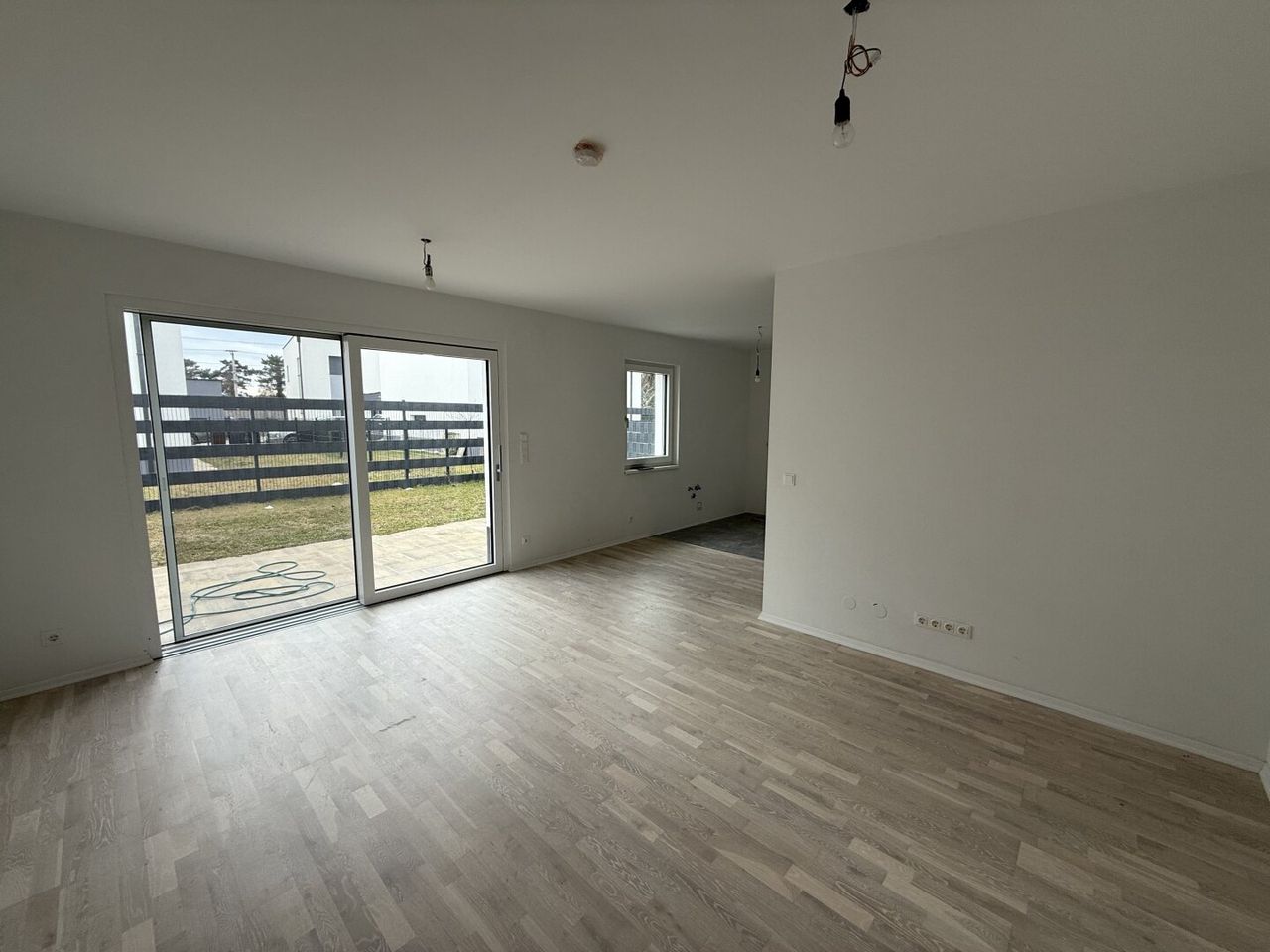 Vorraum mit Garderobe, separates WC, offene Wohnküche mit direktem Zugang zur Terrasse und in den Garten, zusätzliches Zimmer (ideal für Büro oder Gäste).