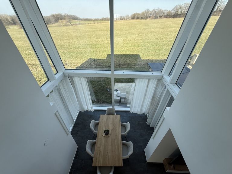 Dieses großzügig angelegte Einfamilienhaus überzeugt durch seine moderne Architektur, helle Räume und eine ruhige Lage mit schönem Blick auf die umliegenden Felder. Große Fensterflächen sorgen für viel Tageslicht und schaffen ein besonders angenehmes Wohnambiente.