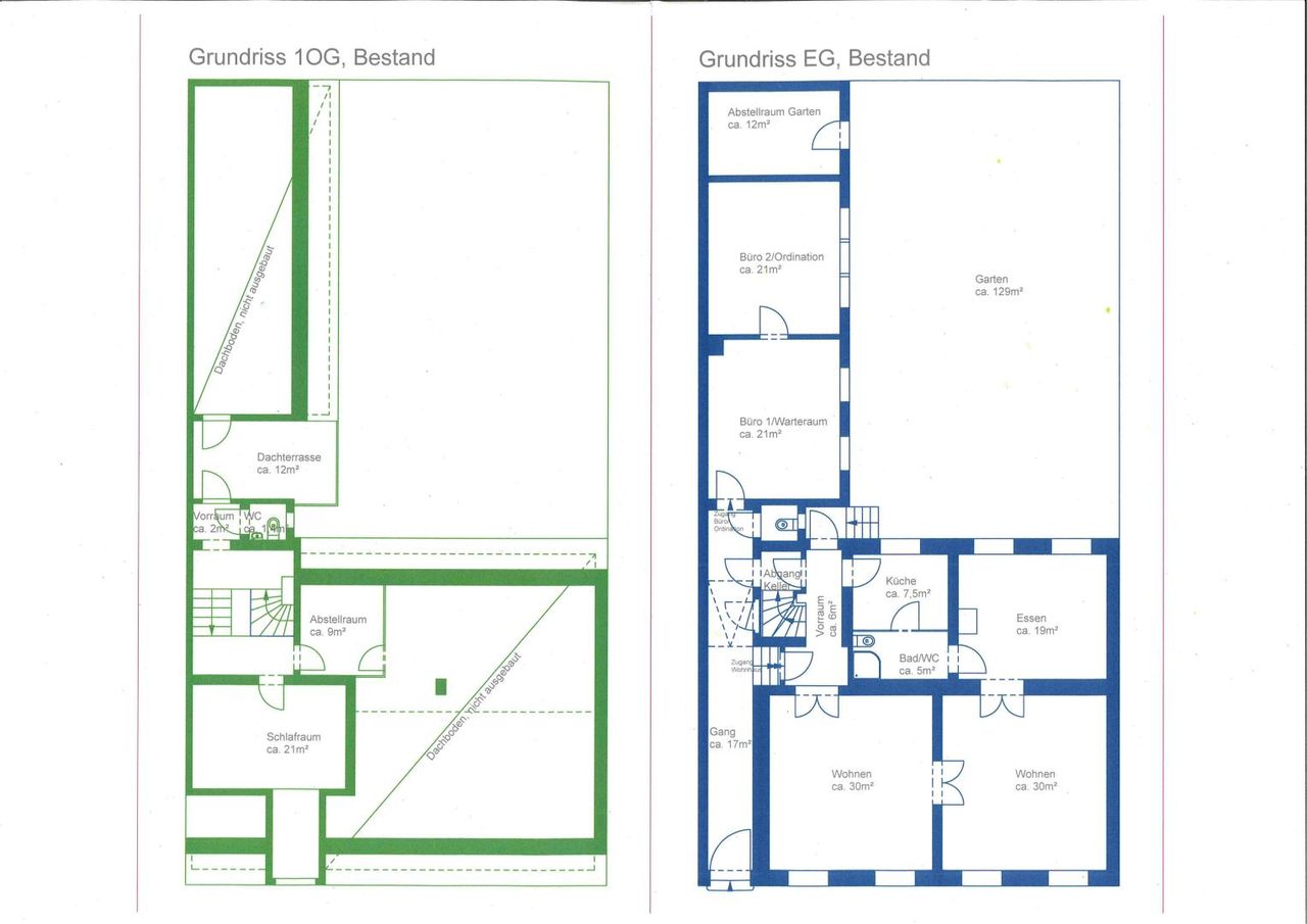 Dazu existieren auch bereits zwei Vorschläge, wie man die beiden Wohneinheiten verbinden, beziehungsweise in welcher Weise man den Dachboden ausbauen könnte!
