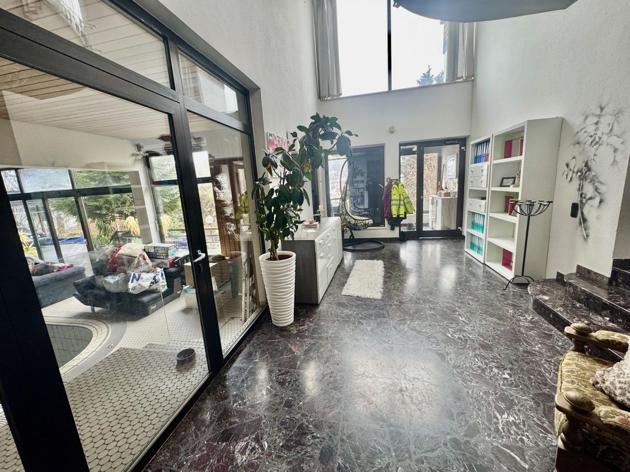 Dieses großzügige Wohnhaus besticht durch seine ruhige Hanglage mit Süd- bis Südwest-Ausrichtung und einen beeindruckenden Blick auf die Berge. Auf insgesamt ca. 517 m² Nutzfläche erwarten Sie 10 Zimmer, die durch ihre durchdachte Raumaufteilung und lichtdurchflutete Ebenen ein außergewöhnliches Wohngefühl schaffen. Die Liegenschaft umfasst ein ca. 5.191 m² großes Grundstück, davon ca. 3.280 m² Bauland – Wohngebiet und ca. 1.911 m² Grünland. Die Hauptflächen sind terrassiert, was eine harmonische Verbindung von Haus, Garten und Natur schafft. Die Immobilie bietet hochwertige Ausstattung und luxuriöse Extras: Schwimmhalle mit Gegenstromanlage, Sauna und Ruheraum – Wellness direkt zu Hause Große Terrassen auf verschiedenen Ebenen...