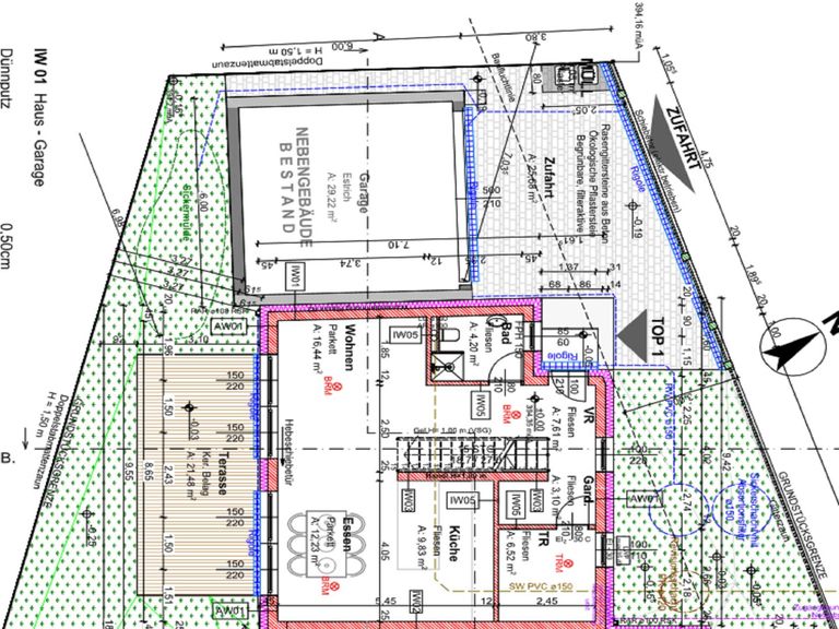 - Gartenanlage komplett, Einfriedung und Einzäunung komplett, Haus außen komplett, Carport, Zentralheizung (Luftwärme), alle Sanitäranschlüsse, alle Stromanschlüsse inkl. Stecker und Steckdosen, alle Estriche, Fliesen- und Echtholzparkett im Erdgeschoss und Laminat in OG, Wände streichfertig, Holztreppe, Stiegen Geländer, alle Innentüren, Bad und WC-Ausstattung inklusive Armaturen, alle Bodenbeläge.