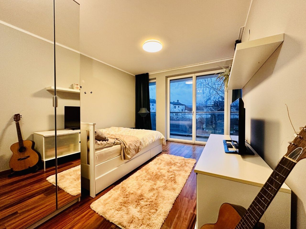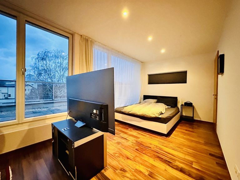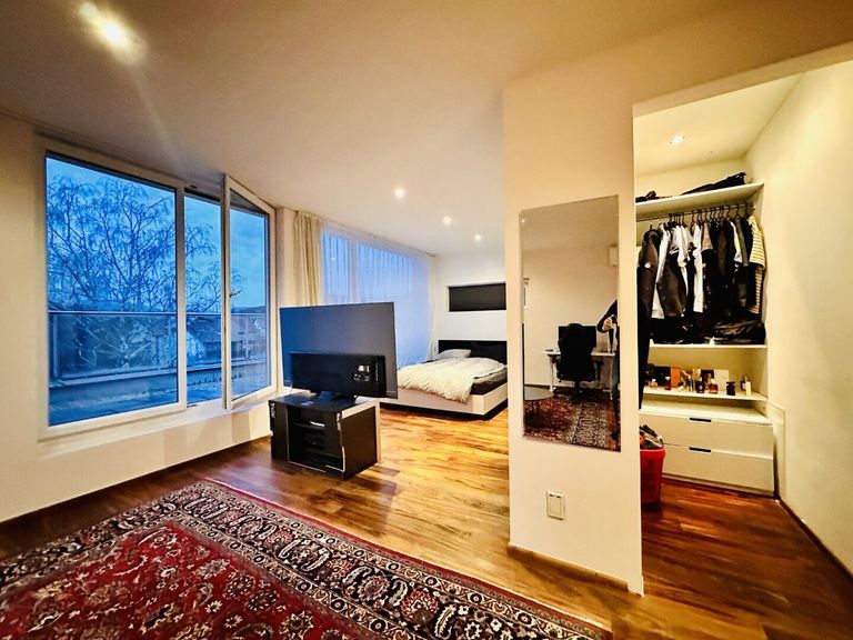 Das Dachgeschoss könnte als eigene Wohneinheit genutzt werden, hier finden Sie ein Badezimmer, einen Wohn- und Schlafbereich, einen Abstell- oder Ankleideraum und auch hier haben Sie Zugang auf einen weitläufigen Balkon.