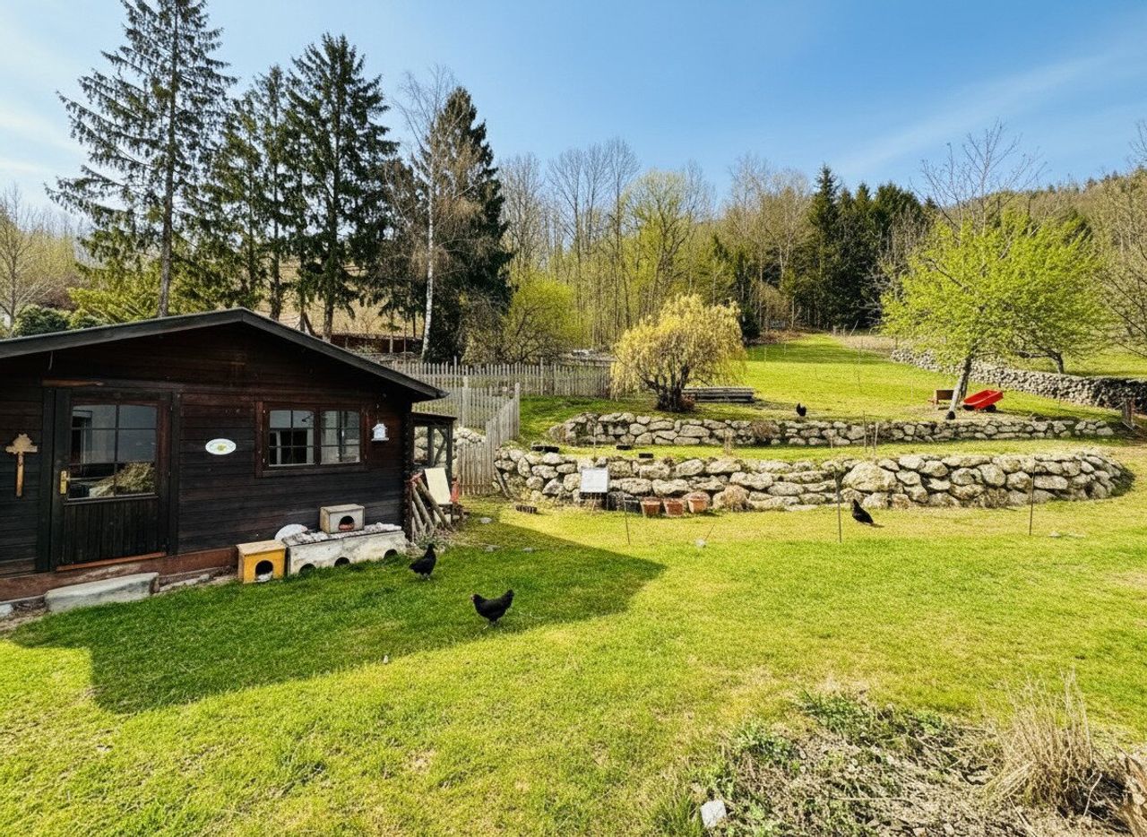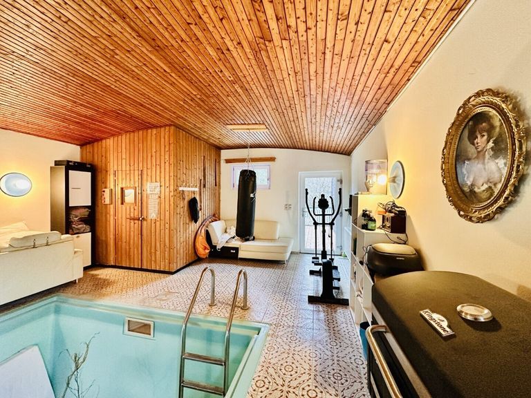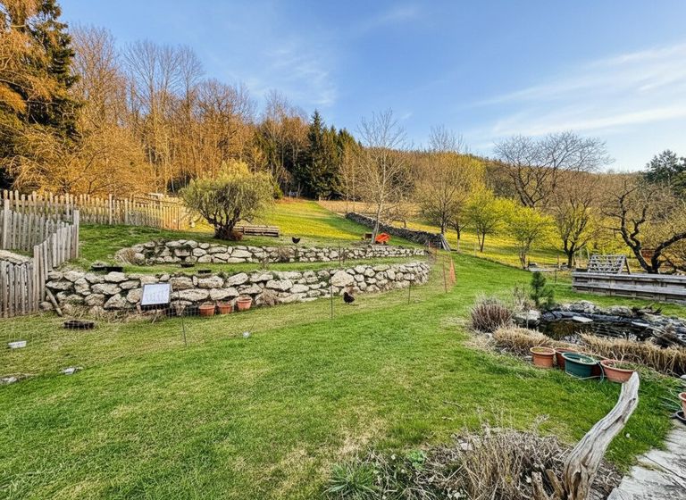 Das außergewöhnlich attraktive Anwesen besticht mit einem 6.991 m² großen Grundstück mit Wald und Hobby-Hühnerfarm, privates überdachtes Schwimmbad samt Sauna und einem Naturidyll, das Ihr Herz höher schlagen lässt.