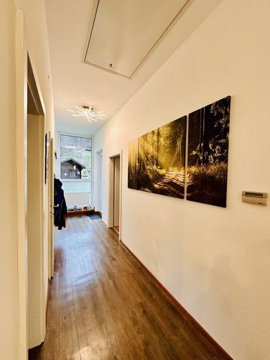 54,20 m² Fläche im UG, wobei hiervon knapp 30 m² als schöner Eingangsbereich (Diele) und 1 Schlafzimmer ausgebaut wurde. Die restliche Fläche wird als Heizraum und Abstellraum genutzt.