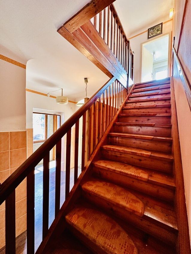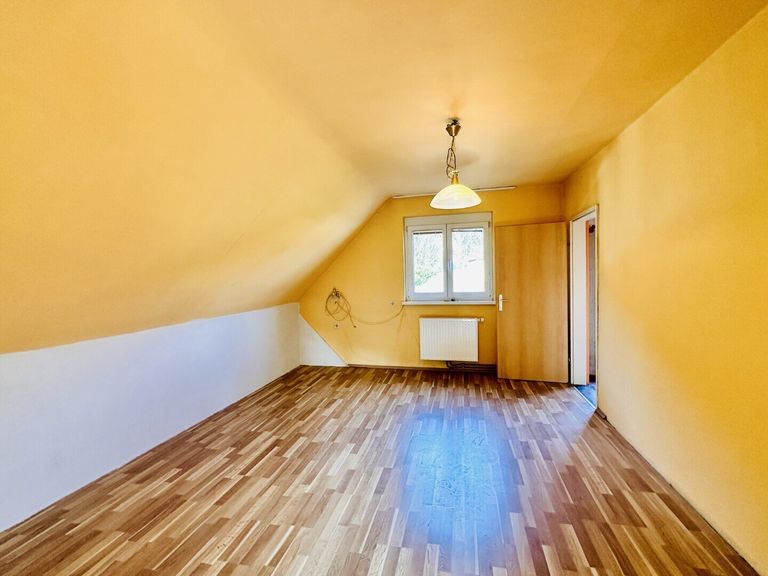 Im Obergeschoss (ausgebaute Mansarde) erwartet Sie ein Vorraum sowie zwei großzügige Zimmer, die vielseitig genutzt werden können – beispielsweise als Schlafzimmer, Arbeitszimmer oder Hobbyraum. Zusätzlich befindet sich hier ein WC, das den Wohnkomfort weiter erhöht. Über eine weitere Tür gelangen Sie auf eine neu abgedichtete Terrasse, die auf die Hinterseite des Hauses hinaus geht.